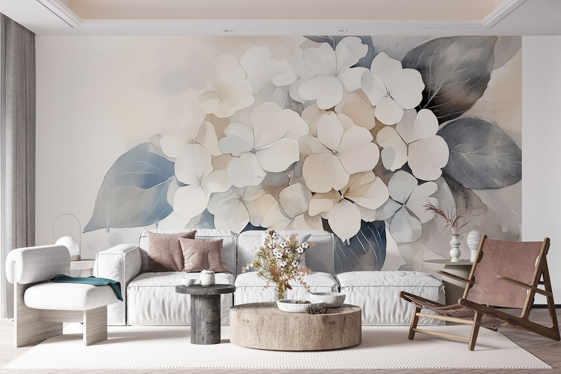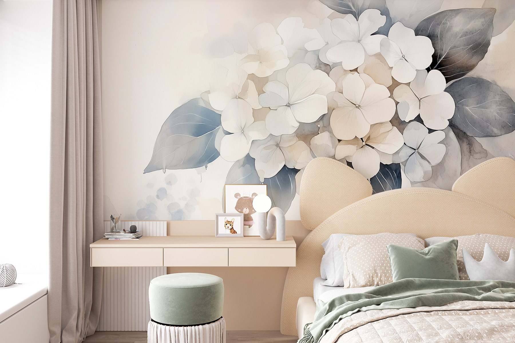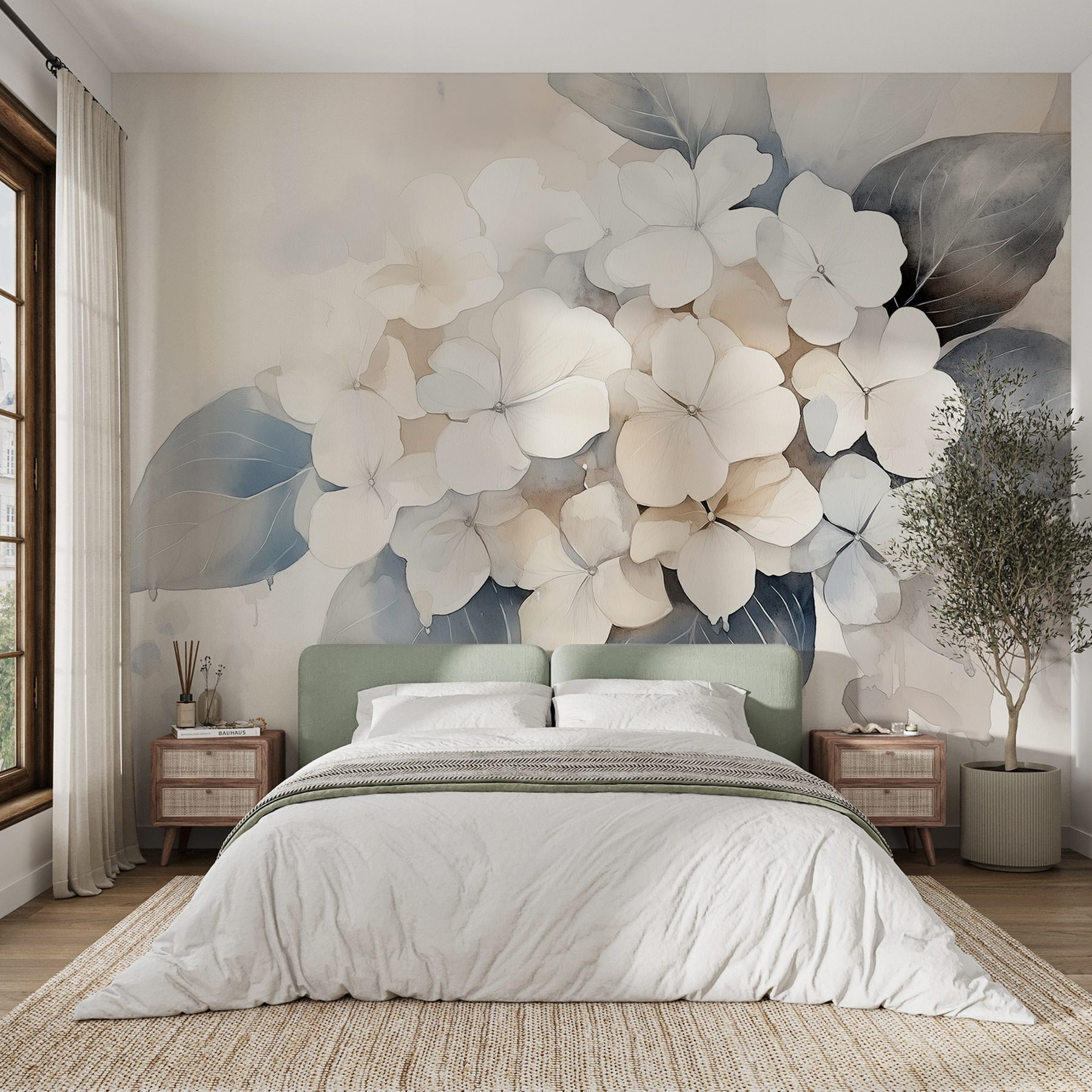 Tover elke ruimte om in een serene oase met deze delicate aquarelmuurschildering met bloemen. Stel je voor dat je een rustgevende tuin binnenstapt waar zachte witte en grijze tinten moeiteloos over de muur zweven – net als op een zachte lentedag. Stel je voor dat je aan je ochtendkoffie nipt, de schoonheid van deze bloemen inspireert tot een moment van rust voor een hectische dag. Perfect voor een gezellige leeshoek of een rustige slaapkamer, deze muurschildering fluistert elegantie zonder om aandacht te schreeuwen. Het is alsof je een stukje natuur in huis hebt – zonder dat je groene vingers nodig hebt. Verfris je muren en laat de zachtheid van aquarel je ruimte omarmen!