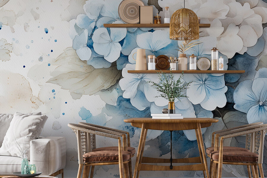 Tover elke ruimte om in een sereen paradijs met deze prachtige aquarelmuurschildering van delicate bloemen. Stel je voor dat je een kamer binnenloopt die direct aanvoelt als een frisse lentemorgen – zacht blauw en zacht wit gaan naadloos in elkaar over en creëren een rustgevende sfeer die je omringt. Het is alsof je een tuin aan je muur hebt! Perfect voor woonkamers, slaapkamers of zelfs een gezellig leeshoekje. Stel je voor dat je lekker wegkruipt met een goed boek, omringd door deze prachtige bloemen. Misschien ga je wel dagdromen en vraag je je af of je ook zulke mooie bloemen zou kunnen kweken. Ideaal voor iedereen die van een warme, uitnodigende inrichting houdt. Bovendien is het een fantastische gespreksstarter – daar kan niets tegenop!