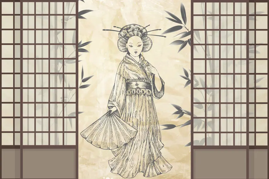 Transformeer elke ruimte met deze betoverende muurschildering van een vrouw in een kimono, die gratie en elegantie uitstraalt. Stel je haar rustig voor, alsof ze net uit een dromerig aquarel schilderij komt, en breng een serene sfeer in je kamer. De zachte kleuren gaan naadloos in elkaar over, waardoor het perfect is voor een gezellige leeshoek of zelfs een rustgevende slaapkamer. Stel je voor dat je lekker wegkruipt met een goed boek, haar zachte aanwezigheid om je heen als een warme knuffel. Deze muurschildering versiert niet alleen een muur, maar nodigt uit tot verhalen, gefluister over traditie en een vleugje culturele charme in je leven.
