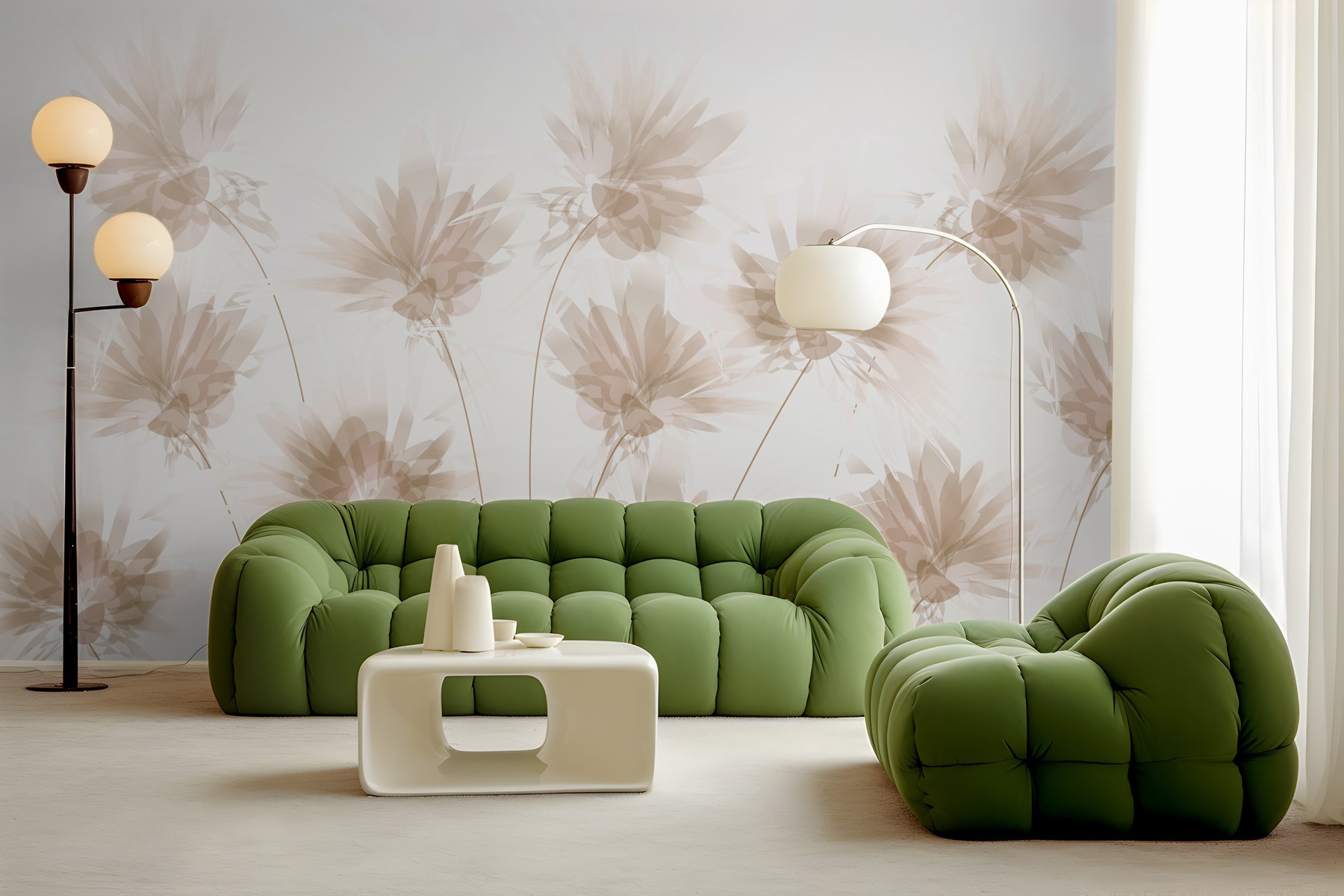 Fleur elke kamer op met deze prachtige muurschildering van bloemen op een zacht witte achtergrond. Het is alsof je een tuin in huis haalt zonder dat je gieters of tuinkabouters nodig hebt! Stel je voor dat je elke ochtend wakker wordt met deze zachte bloemenvibe – dat zal je humeur zeker opvijzelen, toch? Het subtiele aquareleffect geeft een dromerig gevoel, perfect voor een gezellige woonkamer of een serene slaapkamer. Elke bloem fluistert een zacht verhaal van de natuur en nodigt uit tot creativiteit en warmte. Voeg een vleugje eigenzinnigheid toe en kijk hoe de complimenten binnenstromen – je muren zullen je dankbaar zijn!
