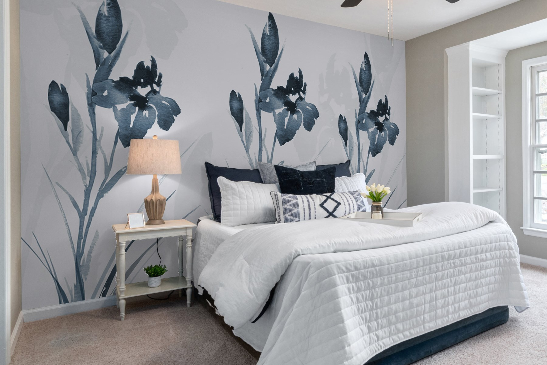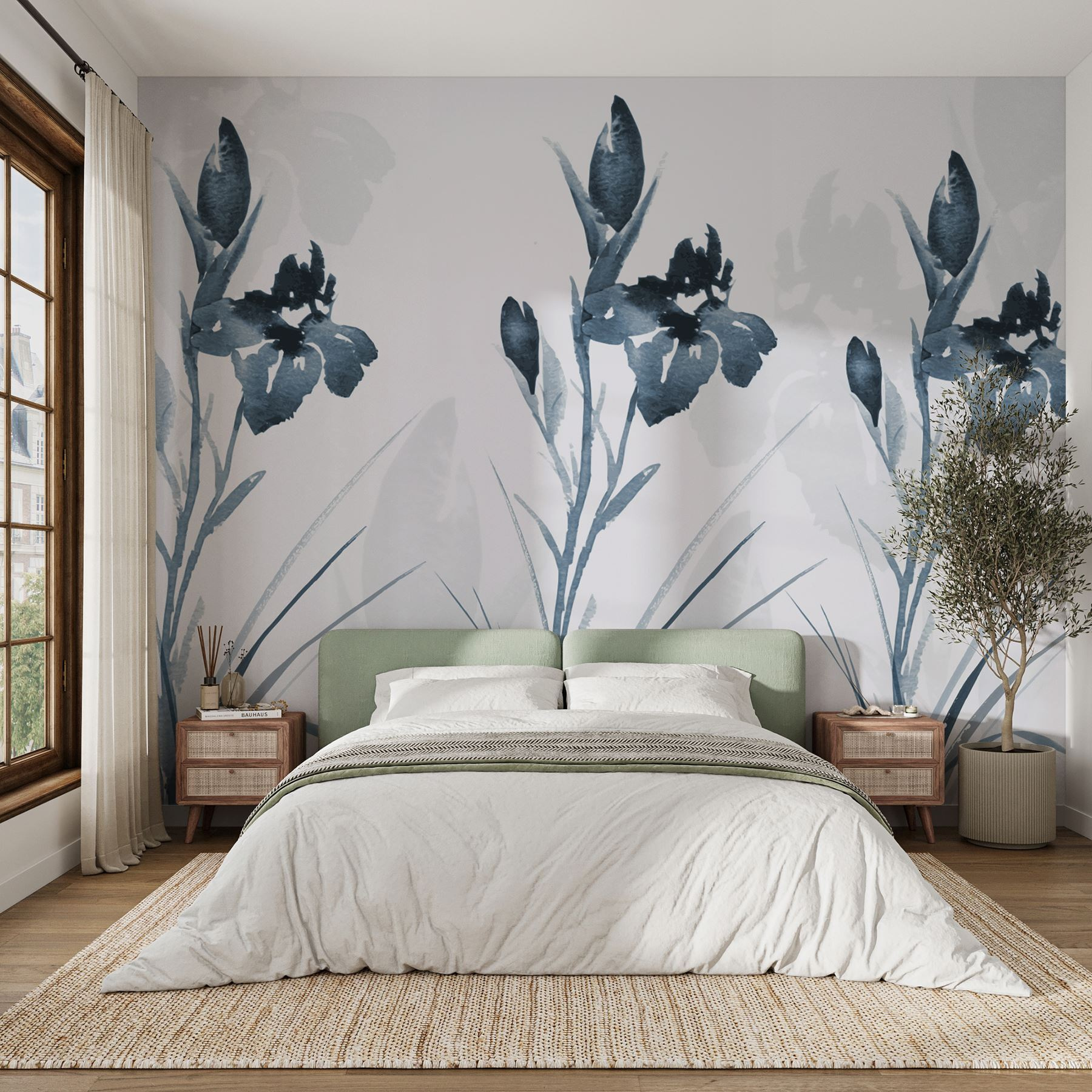 Verander een saaie muur in een serene ontsnapping met deze prachtige muurschildering met een elegant bloemenontwerp in dromerige koele tinten. Stel je voor dat je een winderige tuin binnenstapt telkens als je de kamer binnenloopt. De zachte penseelstreken en zachte tinten voegen een vleugje rust toe en veranderen elke ruimte in een zen toevluchtsoord. Perfect voor een gezellig leeshoekje of een chique eethoek, het fluistert verfijning zonder te schreeuwen. Het is alsof je een stukje natuur in huis hebt – zonder de vervelende insecten! Laat deze muurschildering je dagelijkse herinnering zijn om te vertragen en de schoonheid om ons heen te waarderen.