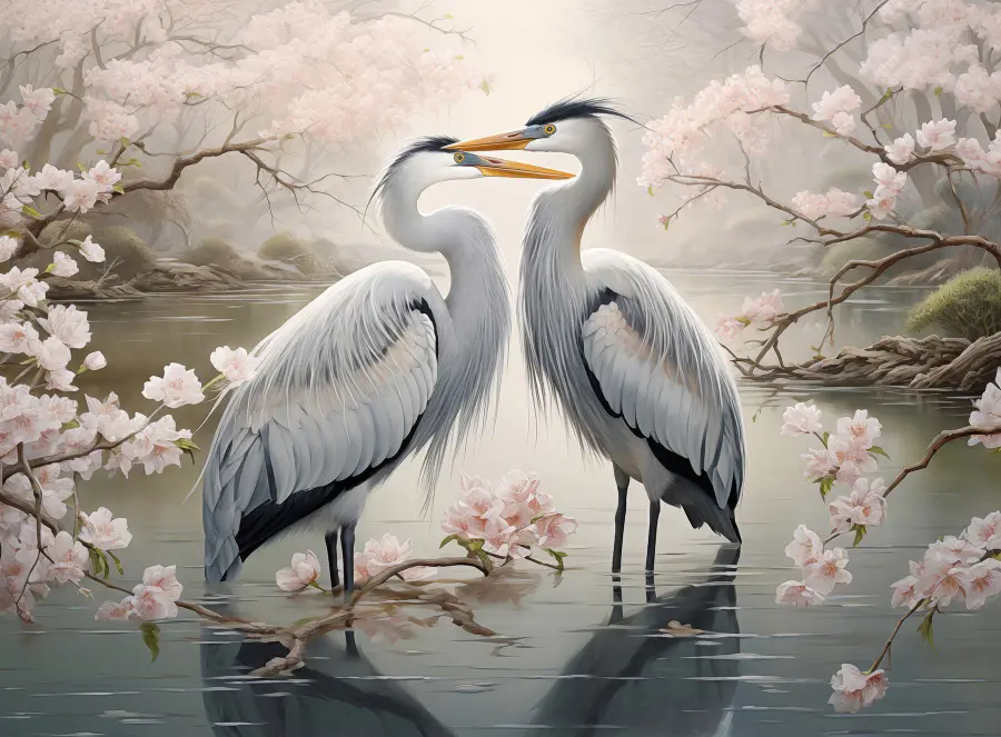 Transformeer je ruimte met deze betoverende muurschildering met een paar sierlijke witte vogels in sereen water, omringd door delicate roze bloemen. Het is alsof je een stukje van een rustige Japanse tuin thuis hebt! Stel je voor dat je thee drinkt terwijl het zonlicht danst op het wateroppervlak en speelse reflecties werpt. De zachte aquareltinten creëren een uitnodigende, gezellige sfeer – perfect voor een leeshoekje of een vredig toevluchtsoord. Het is een mooie herinnering aan de schoonheid van de natuur, en wie wil er nu niet een beetje gevederde romantiek aan de muur? Helder, zacht en uiterst charmant, zal deze muurschildering zeker de show stelen – net als die vogels!