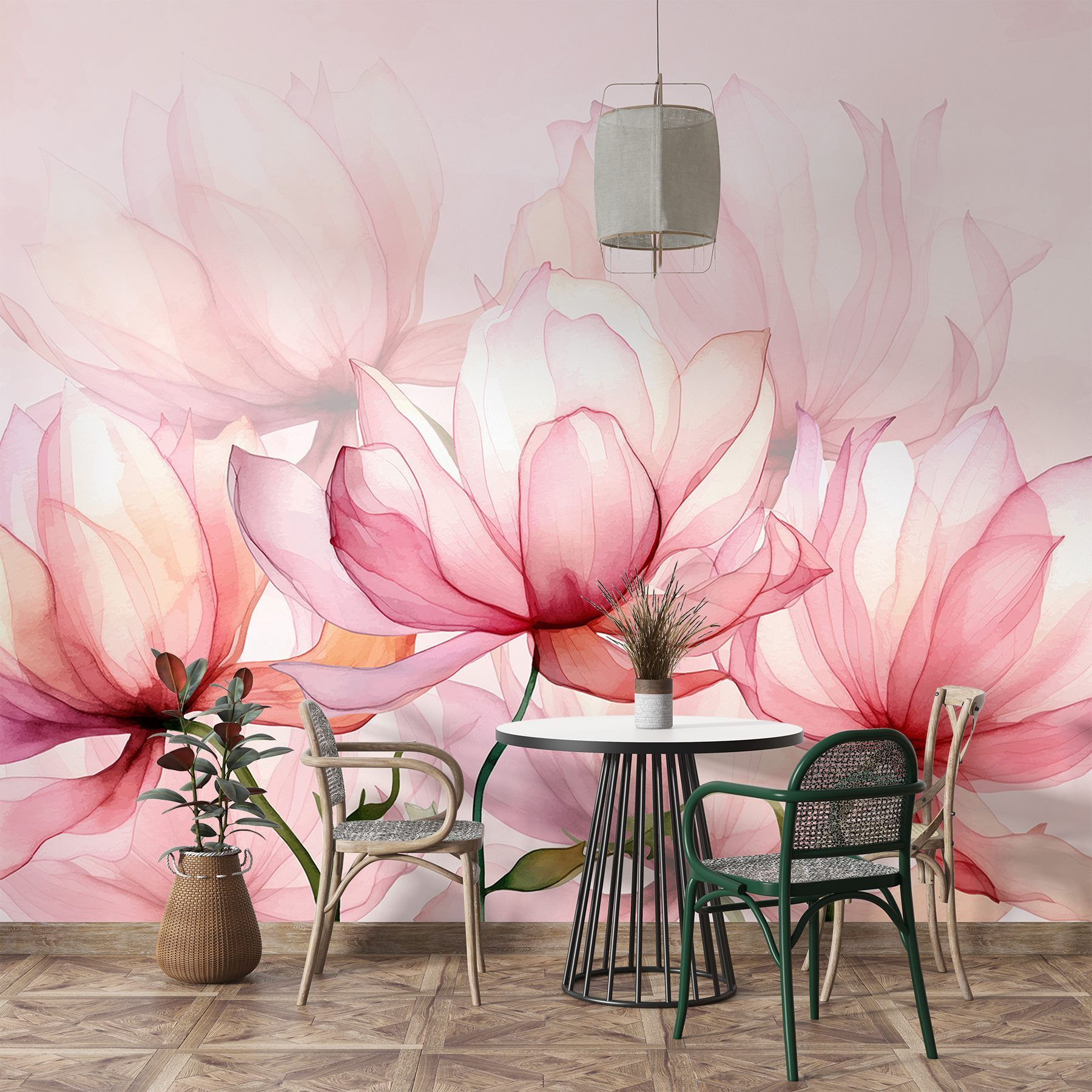 Stel je eens voor dat je een ruimte binnenloopt waar tere bloemblaadjes bloeien in zachte tinten, die je overal rust inboezemen. Deze muurschildering is niet zomaar kunst; het is als een zachte knuffel op de muren. Stel je een knus hoekje voor met een comfortabele stoel, zonlicht dat naar binnen schijnt en misschien een kopje koffie in de buurt. Elke blik op die mooie pioenrozen kan een stemming opfleuren, waardoor het leven net iets magischer aanvoelt. Perfect om elke kamer op te fleuren, een vleugje natuur zonder poespas. Wie wil er nu geen bloemenkijkertje in huis? Perfect, toch? Gewoon inademen.
