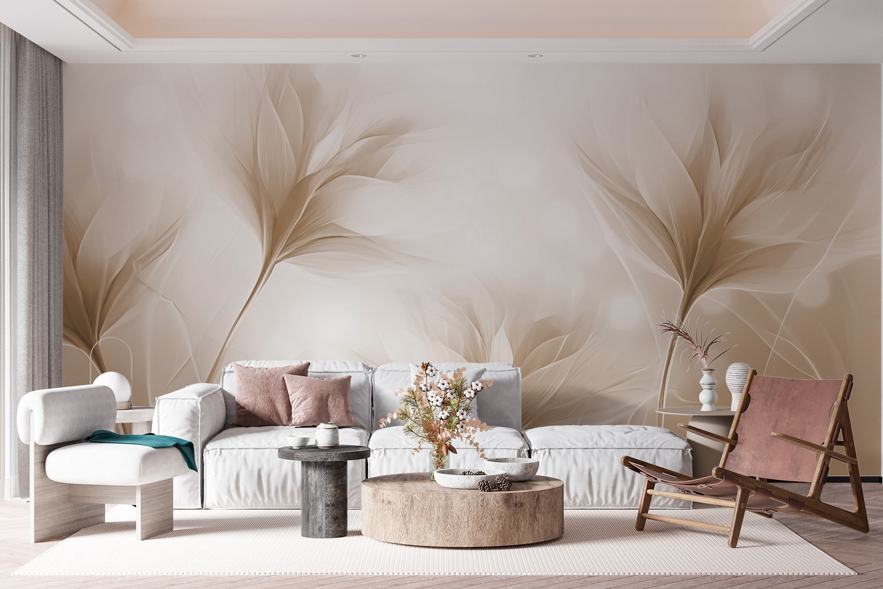 Transformeer je ruimte met de betoverende charme van “Etherische bloemblaadjes in zachte tinten”. Deze muurschildering voelt aan als een zacht gefluister van de natuur, die kamers in een serene omhelzing hult. Stel je voor dat je ‘s ochtends aan je koffie nipt, omringd door delicate bloemmotieven die wiegen en dansen en een ontspannen sfeer brengen op elke muur. De zachte kleuren creëren een gezellige sfeer, perfect om tot rust te komen na een lange dag, of om je creativiteit te stimuleren terwijl je thuis werkt. Het is alsof je een geheime tuin naar binnen haalt, zonder het vuil en de gieter! Dus als er een hoekje is dat een beetje magie nodig heeft, is deze muurschildering precies wat je nodig hebt.