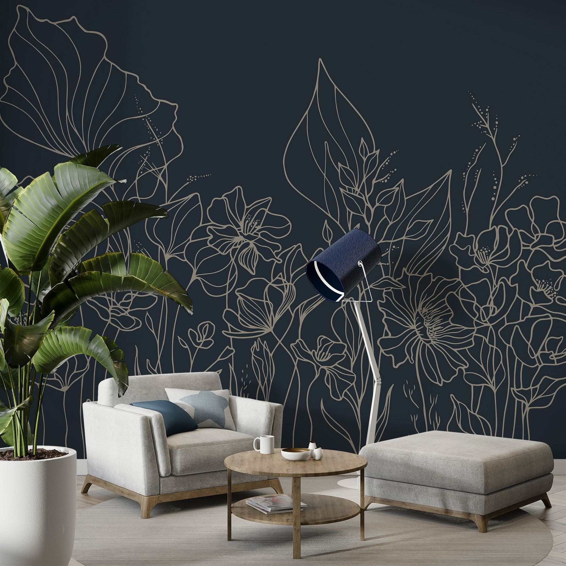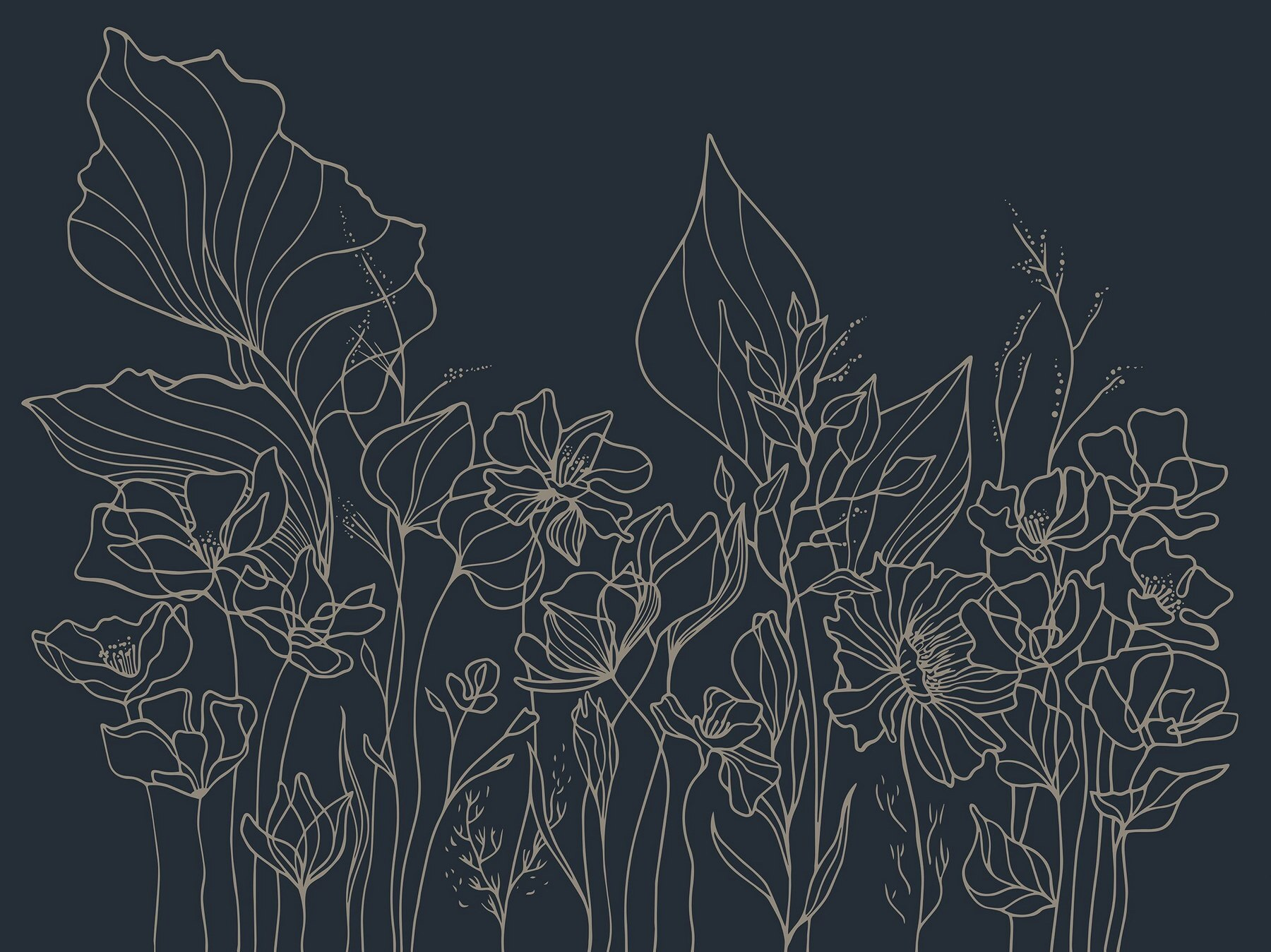 Transformeer je ruimte met de betoverende “Fotobehang Line Drawing of Flowers”. Stel je voor dat je thuiskomt in een bloemenoase waar kunstzinnigheid en rust elkaar ontmoeten – alsof je een tuin hebt die nooit verwelkt. De elegante lijntekeningen dansen tegen de donkere achtergrond en creëren een opvallend beeld dat de aandacht trekt en een gesprek op gang brengt. Stel je voor dat je thee drinkt op een gezellige middag, terwijl het zonlicht naar binnen schijnt en de delicate bloemen geheimen van de natuur lijken te fluisteren. Deze muurschildering decoreert niet alleen, maar nodigt ook uit tot sereniteit en inspiratie in je huis. Perfect om op te gaan in je interieur of om op te vallen – het is een vleugje eigenzinnigheid dat precies goed voelt.