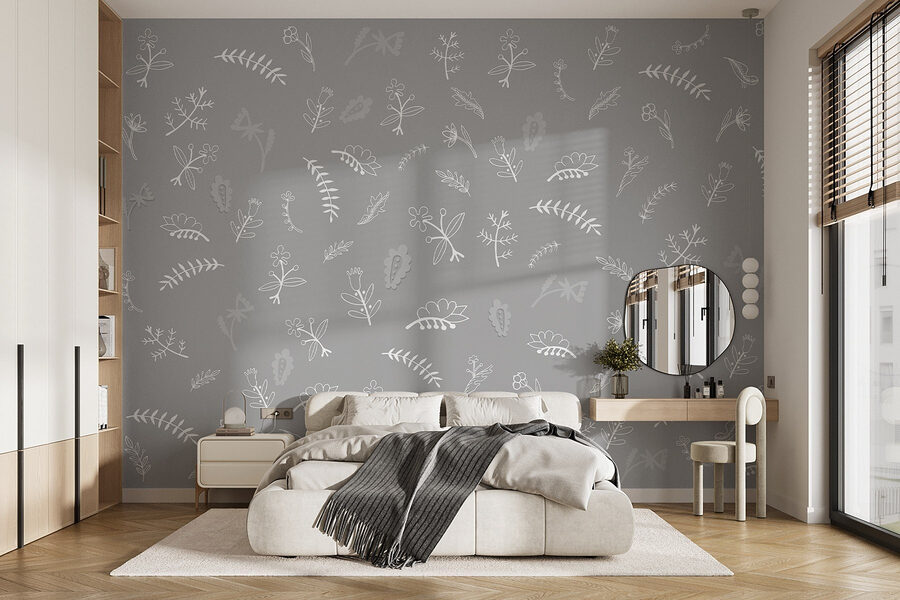 Tover elke ruimte om in een dromerig toevluchtsoord met deze prachtige muurschildering. Zie het voor je: een zachtgrijze achtergrond die danst met delicate witte bloemen en bladeren, als een zacht gefluister van de natuur op je muren. Het is de perfecte sfeer voor gezellige avonden of levendige bijeenkomsten waar gasten misschien even stoppen om de kunstzinnigheid te bewonderen. Stel je voor dat je koffie drinkt in een kamer omringd door dit rustige ontwerp – het voelt als een stukje sereniteit thuis. Bovendien is het geïnspireerd op aquarel en voegt het een vleugje elegantie toe zonder al te veel moeite te doen. Breng wat licht binnen, leg er een paar comfortabele kussens neer en laat de muurschildering haar werk doen!