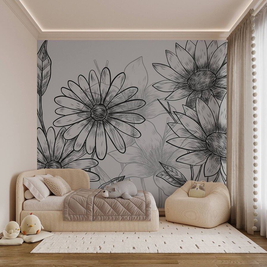 Tover elke kamer om in een bloeiend paradijs met deze prachtige muurschildering met een prachtige groep bloemen en bladeren. Stel je voor dat je elke dag wakker wordt met deze prachtige bloemen, elk bloemblaadje perfect getekend. Het is alsof je een miniatuurtuin in huis hebt, zonder de gieter!