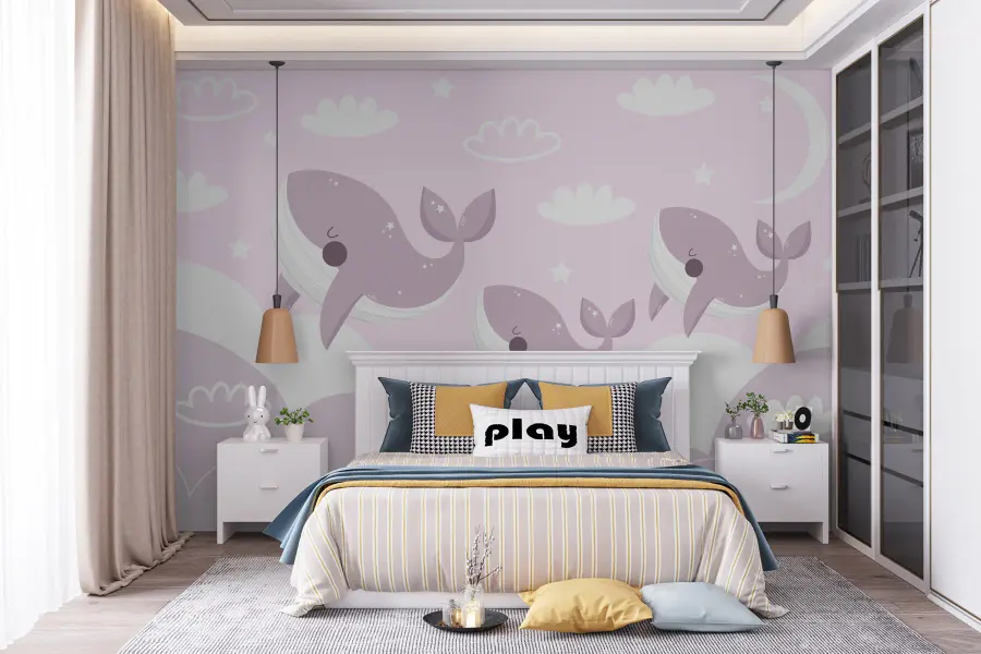 Stel je eens voor: een kamer versierd met prachtige walvissen die door een dromerige hemel zweven. Deze speelse muurschildering “Groep walvissen in de lucht” is niet alleen voor kinderen, maar brengt een vleugje grillige charme in elke ruimte. De zachte roze en grijze tinten creëren een sfeer die zowel rustgevend als vrolijk aanvoelt, alsof je naar suikerspinwolken kijkt bij zonsondergang. Stel je een kleintje voor dat naar boven staart, met grote ogen en betoverd, terwijl ze hun verbeelding de vrije loop laten samen met hun watervriendjes. Deze muurschildering is een vriendelijke herinnering om groots te dromen en de magie van de kindertijd te omarmen – perfect voor kinderkamers, speelkamers of elk ander hoekje dat een vleugje vreugde kan gebruiken.