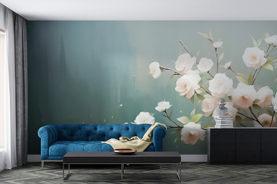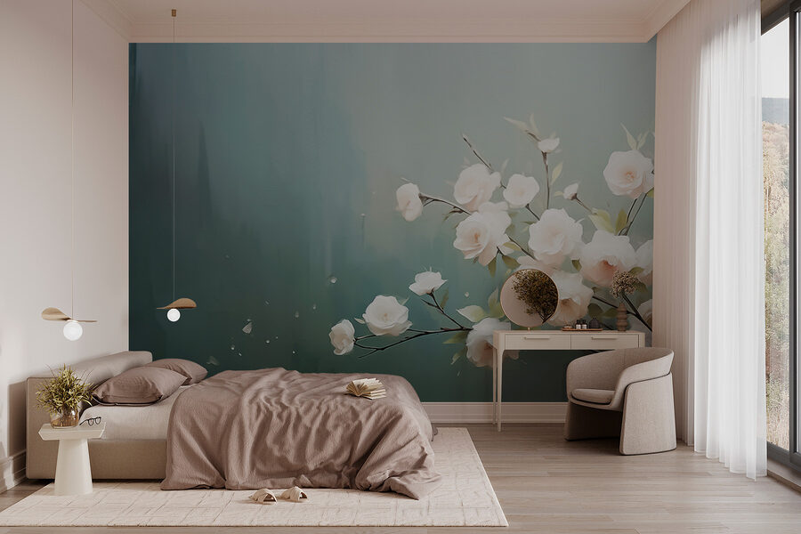 Stel je voor dat je met een goed boek naast deze muurschildering gaat liggen, de subtiele tinten creëren een sfeer die zowel verfrissend als gezellig aanvoelt. Het is alsof je een beetje natuur in huis haalt, maar dan zonder gieter. Wie wil er nou niet wakker worden met deze bloemenpracht? Perfect voor liefhebbers van een unieke inrichting, het is een eenvoudige manier om een groot statement te maken!