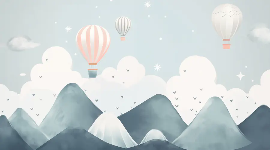 Verfraai je ruimte met deze betoverende muurschildering met heteluchtballonnen die sierlijk over dromerige bergen zweven. Stel je voor dat je elke dag wakker wordt met dit serene tafereel – het is alsof je in een aquarelschilderij stapt! De zachte blauwtinten en zachte kleuren nodigen uit tot rust en zijn daarom perfect voor een gezellige woonkamer of een rustige slaapkamer. Stel je een luie zondag voor met een kop koffie, het daglicht dat naar binnen schijnt, terwijl je dagdroomt over zweven tussen de wolken. Voeg een vleugje eigenzinnigheid toe aan je muren en misschien inspireert het wel tot avontuur! Wie weet, misschien begint de muur wel zoete ontsnappingsplannen te fluisteren.