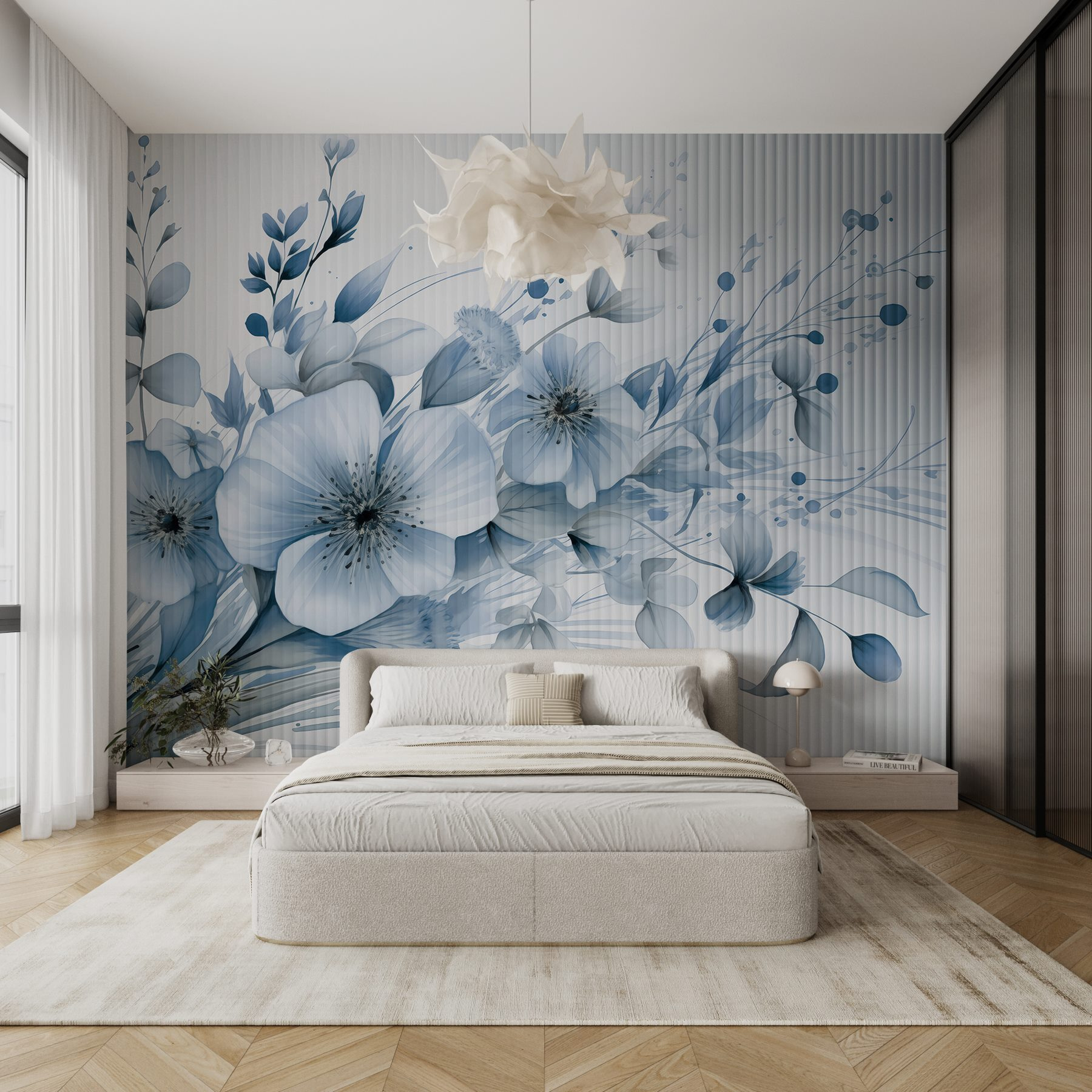 Verander je ruimte in een oase van rust met de muurschildering “Floral Elegance in Soft Hues”. Dit prachtige stuk toont delicate bloemen die geheimen van de lente lijken te fluisteren. Stel je voor dat je wakker wordt met zacht blauw en zacht groen, waardoor elke ochtend voelt als een wandeling door een serene tuin. Het is als een kunstwerk uit de natuur dat de rust in je huis brengt. Perfect voor een gezellig leeshoekje of een rustgevende slaapkamer, het is een zachte herinnering om te vertragen en te genieten van de kleine dingen. Bovendien verbergt het al die vervelende kleine imperfecties op je muren – bonus! Laat je muren het woord doen.