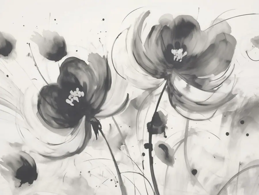 Transformeer je ruimte met deze prachtige muurschildering met een delicate bloemschildering die over een helder witte achtergrond danst. Het samenspel van zacht zwart en wit creëert een dromerige sfeer. Stel je voor dat je je kamer binnenstapt en je een beetje meer ontspannen voelt, een beetje meer geïnspireerd. Het is alsof je een stukje natuur op je muur hebt, zonder de pollenallergie!