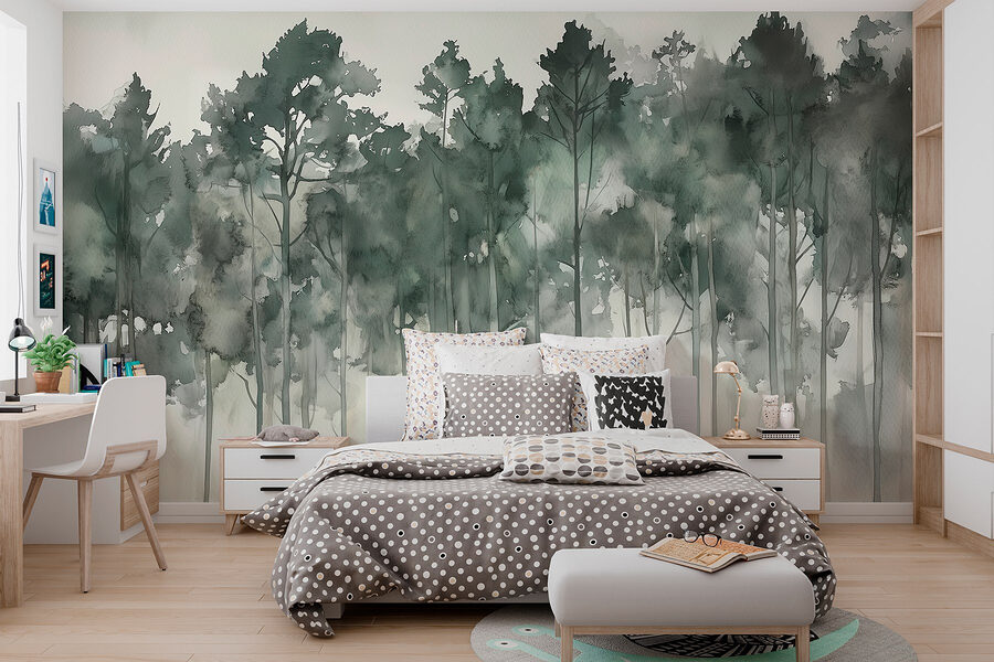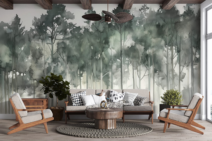 Haal de serene schoonheid van de natuur in huis met de muurschildering “Bomengroep in Mist”. Stel je voor dat je elke dag wakker wordt in een mistig bos, waar bomen geheimen fluisteren tegen een zachte achtergrond. Dit aquarel meesterwerk vangt die ongrijpbare rust – perfect voor die rustige ochtenden met een warme kop koffie. Het is alsof je een beetje van de buitenwereld in je woonkamer hebt, zonder de insecten natuurlijk! De gedempte tinten gaan naadloos in elkaar over en voegen diepte toe zonder je ruimte te overweldigen. Voel je de zen vibes? Het is een gezellige herinnering aan vredige uitjes, ook al is het maar een muur in je huis. Natuurliefhebbers, verheug je!