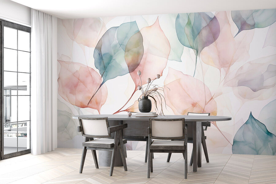 Door een ruimte te transformeren met de muurschildering ‘Soft Hues of Delicate Leaves’ haal je als het ware een zacht gefluister van de natuur in huis. De zachte kleuren en dromerige ontwerpen zijn perfect om elke kamer een ontspannen sfeer te geven. Stel je voor: je komt binnen en meteen verdwijnt de buitenwereld – je woonkamer wordt een serene oase! Het aquareleffect is zo rustgevend, het is alsof de bladeren speciaal voor jou wapperen. Stel je voor dat je lekker met een boek gaat zitten of koffie drinkt, omringd door deze rustige schoonheid. Het voegt een vleugje elegantie toe zonder opzichtig te zijn. Wie had gedacht dat een muurschildering zo rustgevend kon zijn?