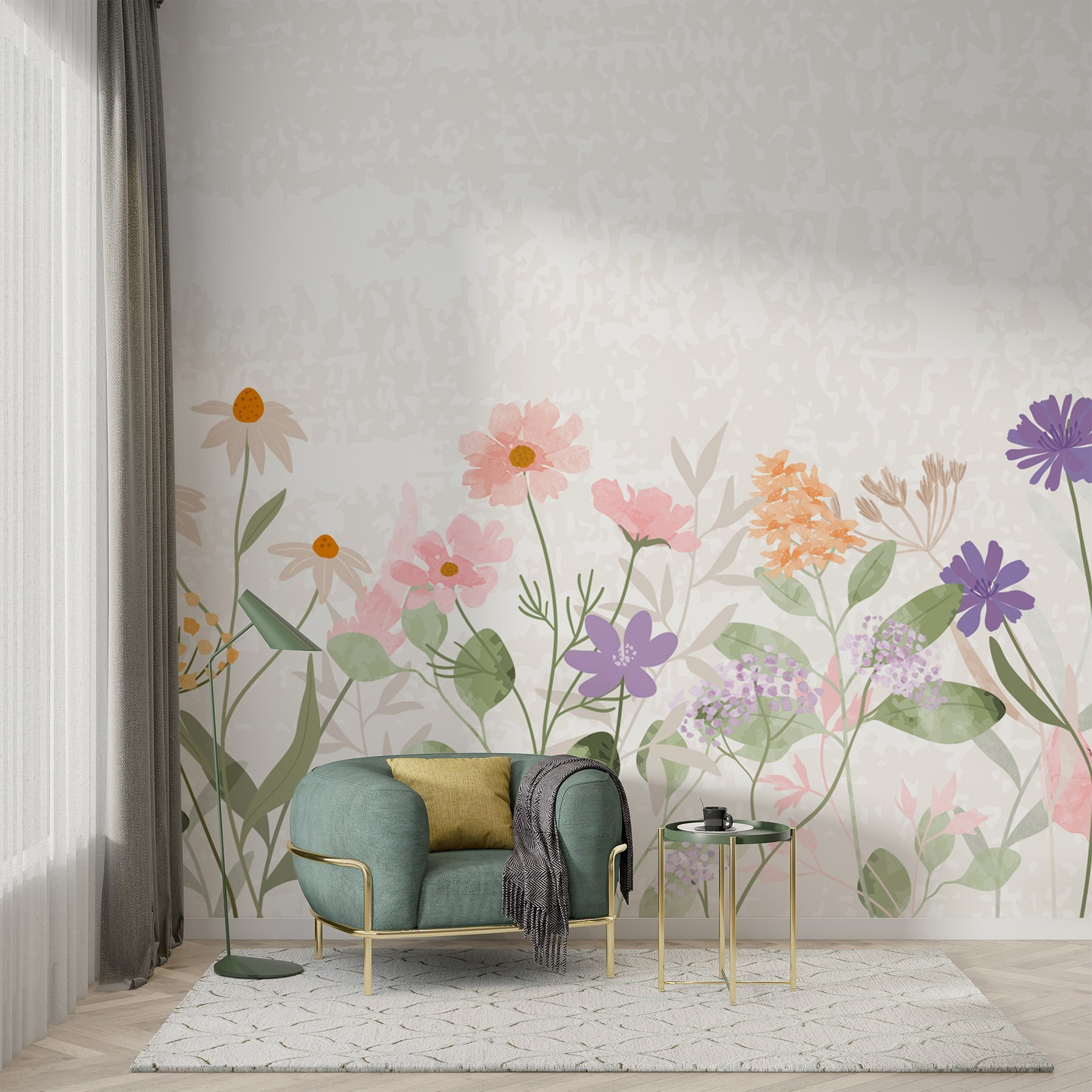 Transformeer elke ruimte met deze prachtige muurschildering, “Row of Flowers with Leaves”. Het brengt een mooie uitbarsting van kleur en een vleugje natuur in uw huis. Stel u voor dat u elke ochtend wakker wordt met deze zachte aquarelbloemen die uw humeur onmiddellijk opvrolijken – een echte gamechanger voor die slaperige ochtenden!