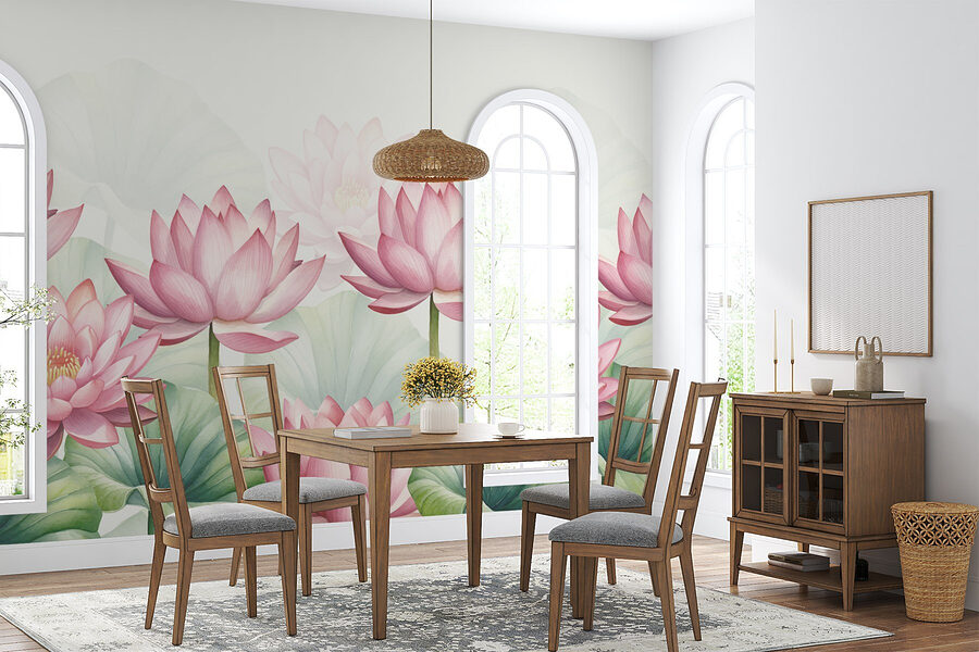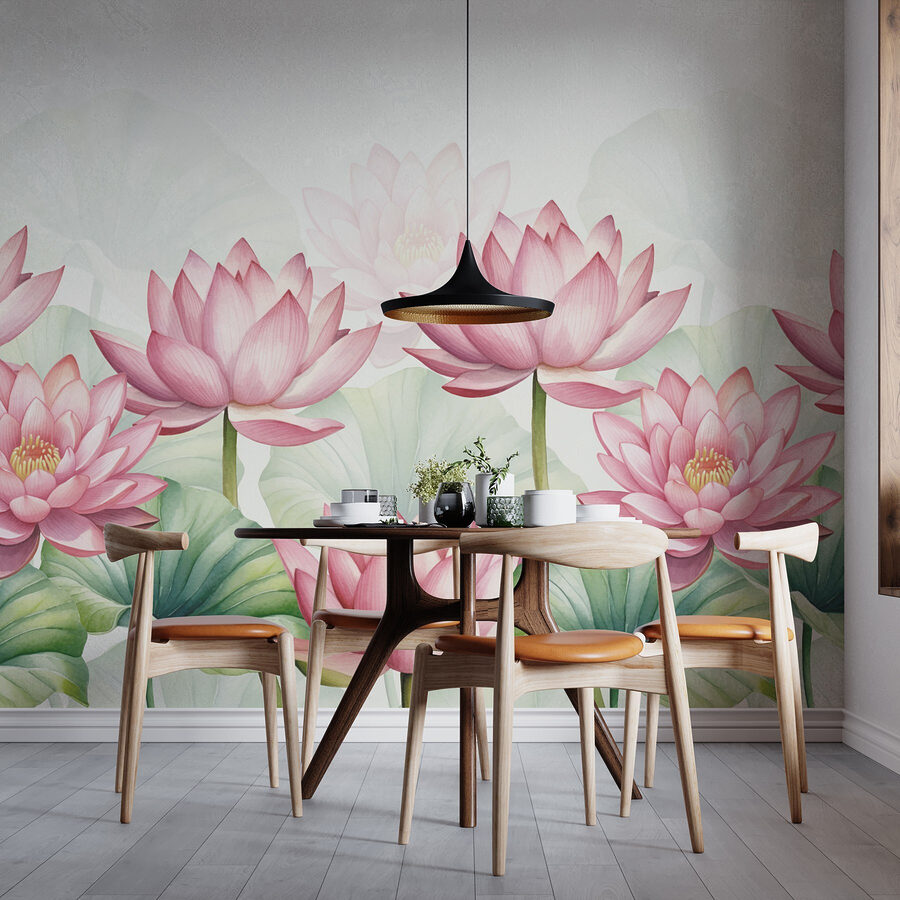 Transformeer elke ruimte met deze betoverende muurschildering van roze bloemen tegen zachtgroene bladeren. Het is alsof je een tuin binnenshuis hebt, zonder de gieter en de vervelende bijen. Stel je eens voor: een gezellige woonkamer waar deze levendige bloemen in het middelpunt staan, vreugde uitstralen en uitnodigen tot complimentjes van iedereen. Het aquareleffect zorgt voor een zachte touch en creëert een serene sfeer die bijna aanvoelt als een dromerige ontsnapping. Perfect voor een slaapkamer of een vrolijk hoekje – een beetje charme dat “ontspan en geniet” fluistert elke keer dat je een blik op haar werpt.