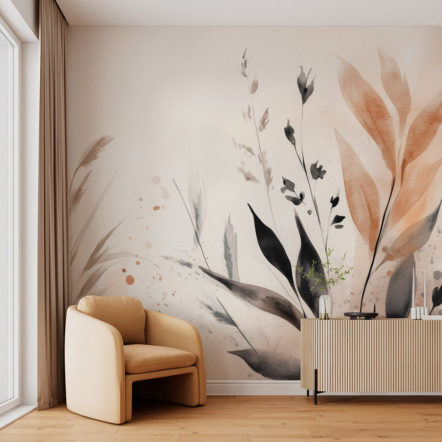 Stel je voor dat je thuis in een serene kleine oase stapt met “Zachte tinten van de omhelzing van de natuur”. Deze muurschildering fluistert bijna vrede uit, met zachte waterverfbladeren die over een delicate achtergrond dansen. Het is alsof je een zacht briesje in je woonkamer uitnodigt – een beetje magisch, toch? Perfect om bij weg te dromen of gewoon om tot rust te komen na een lange dag, het brengt de buitenlucht naar binnen, zonder vervelende insecten. Stel je een knus leeshoekje voor of een levendige eetruimte die verandert in een rustig toevluchtsoord. Het gaat allemaal om dat gevoel van kalme elegantie waardoor je zin krijgt om thee te drinken en van het moment te genieten.