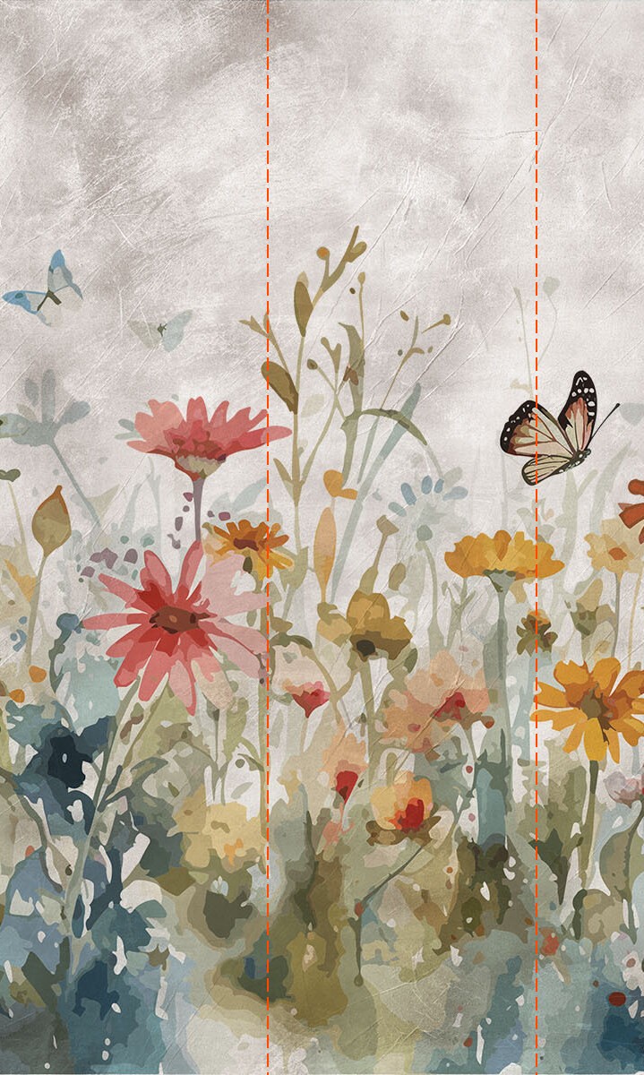 Fotobehang Vlinders dansen boven een kleurrijke weide