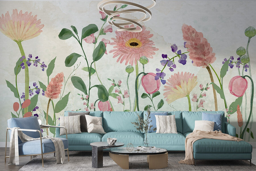 Verander elke kamer in een rustige tuin met deze “muurschildering van bloemen en planten”. Stel je voor dat je wakker wordt met het uitzicht op zachtroze en zachtgroene tinten, alsof je ‘s ochtends door een bloeiende weide wandelt, maar dan zonder te niezen. Deze prachtige aquarel brengt leven en een vleugje fantasie, perfect om een gezellige hoek op te fleuren of een vleugje kleur toe te voegen aan een lege muur. Het is alsof je de buitenlucht naar binnen haalt, maar dan zonder de insecten! Of het nu gaat om een rustige slaapkamer of een levendige woonruimte, deze muurschildering zorgt voor een ontspannen sfeer, waardoor elke blik een kleine knuffel voor de ziel is. Stel je voor, je vrienden vragen je misschien of je bent begonnen met tuinieren – een goed gespreksonderwerp!