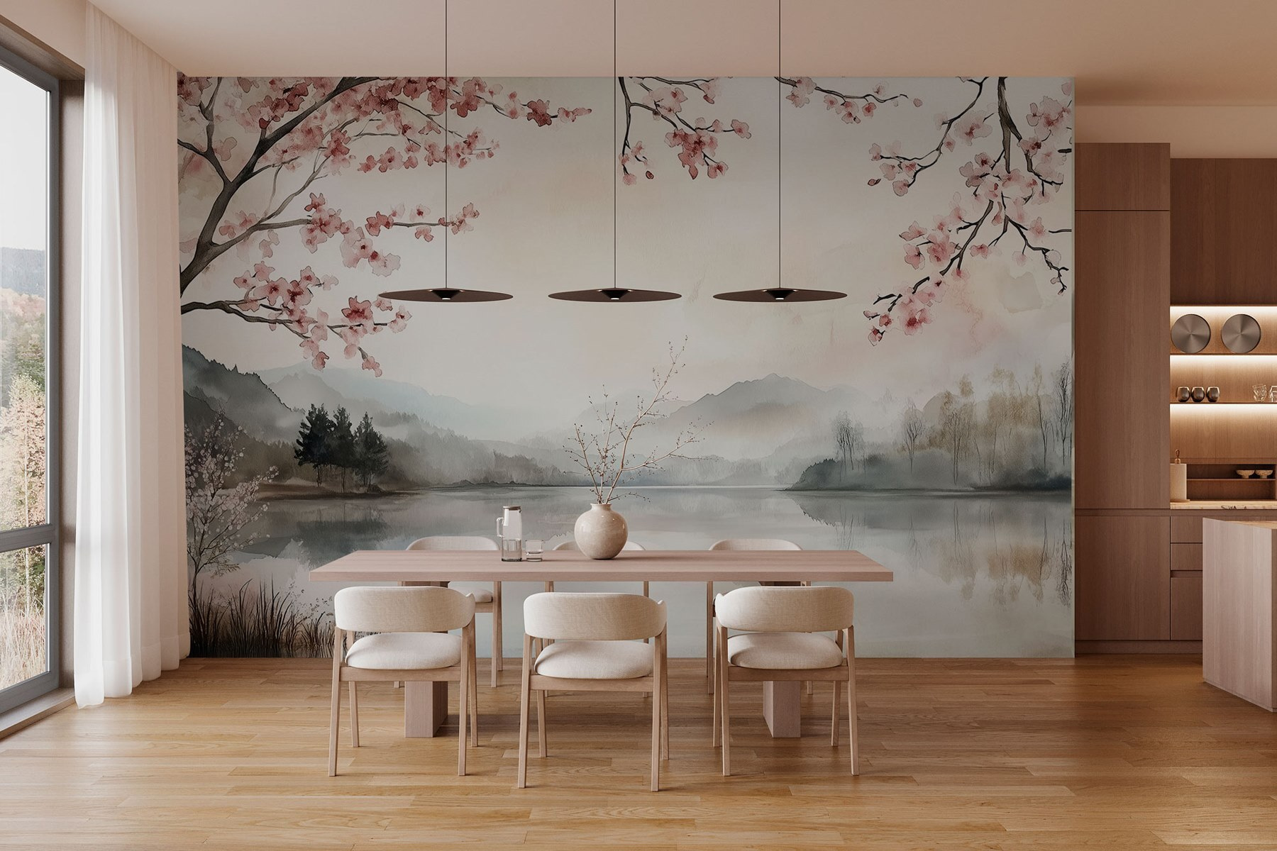 Transformeer je ruimte in een serene ontsnapping met deze prachtige aquarelmuurschildering van een meer omringd door zachte, mistige bergen en delicate bomen. Stel je voor dat je je kamer binnenstapt en het gevoel hebt dat je langs dat rustige water kunt wandelen, misschien zelfs een steentje kunt gooien en de rimpelingen kunt zien dansen. De zachte tinten zorgen voor een kalme sfeer en een perfecte balans, waardoor het een gezellige plek is om te ontspannen of samen te komen met vrienden. Het is als een knuffel van de natuur, direct aan je muur, die uitnodigt tot dagdromen en diep ademhalen. Wie wil dat nou niet? Of je nu gaat voor een rustieke retraite of een moderne twist, deze muurschildering maakt het allemaal moeiteloos af.