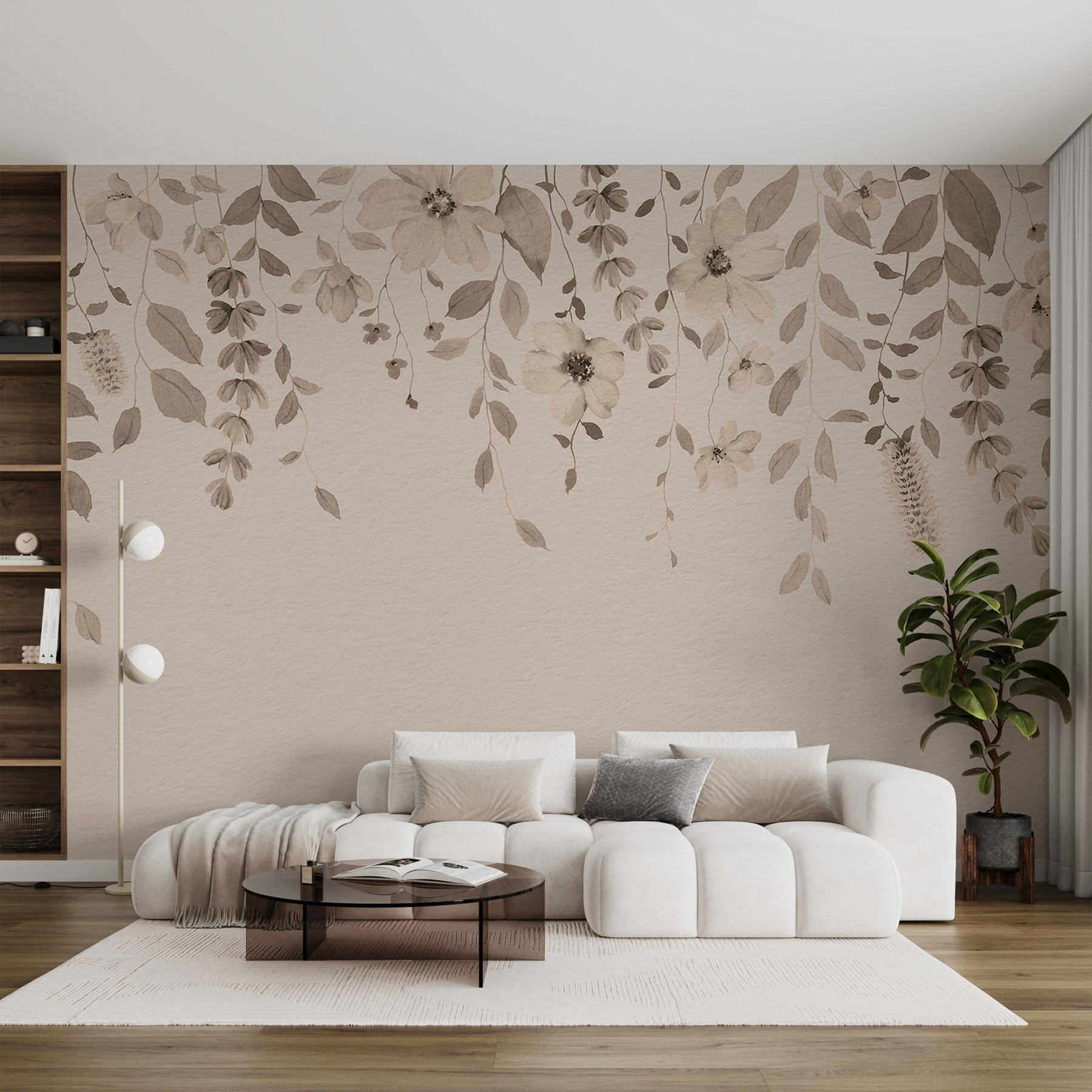 Transformeer elke kamer met deze prachtige muurschildering met delicate bloemen die dansen op een zachte achtergrond. Het is alsof je een vleugje tuin binnenshuis haalt, zonder de vervelende insecten. Stel je voor dat je lekker knus naast je nieuwe bloemenvriendjes gaat zitten, nippend aan een kopje thee terwijl de zon door je kamer schijnt. De zachte kleuren creëren een rustige sfeer, perfect voor een leeshoekje of die ene muur die betere dagen heeft gekend. Het is bijna alsof je een kunstwerk hebt dat uitnodigt tot gesprekken en complimenten, waardoor je ruimte levendig en levendig aanvoelt. Waarom genoegen nemen met gewoontjes als je de schoonheid van de natuur direct op je muren kunt hebben?
