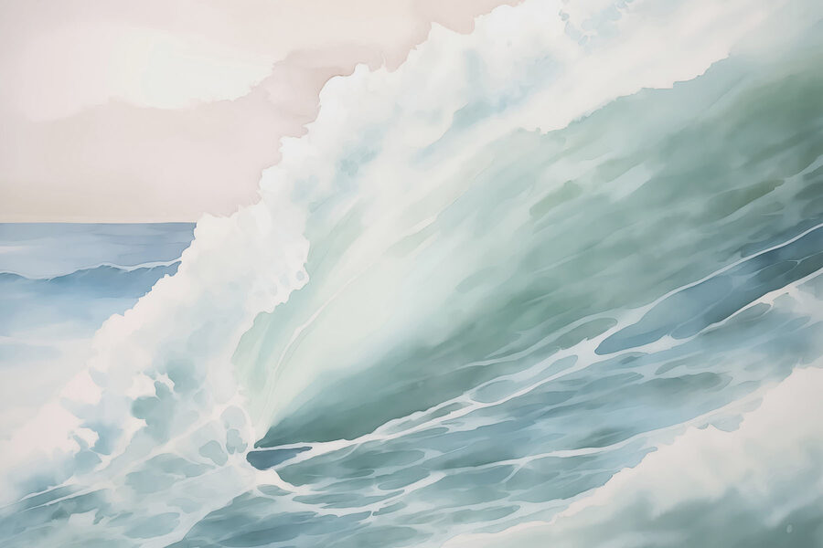 Stel je voor dat je een ruimte binnenloopt die direct aanvoelt als een strandvakantie. Deze muurschildering “Grote golf in de oceaan” trekt je naar binnen met zacht blauw en groen, als een zachte streling van zeelucht. Het is niet zomaar een muurschildering; het is een stemming. Stel je voor dat je in je favoriete stoel gaat zitten, met een warm drankje in de hand, terwijl de golf je kamer binnenrolt en verhalen fluistert over avonturen aan zee. Het aquareleffect voegt een dromerigheid toe, perfect om te dagdromen of gewoon even te ontsnappen aan de drukte. Het brengt een stukje natuur naar binnen, waardoor elke blik een minivakantie wordt. Verander een gewone muur in een dromerige ontsnapping – wie wil dat nou niet?