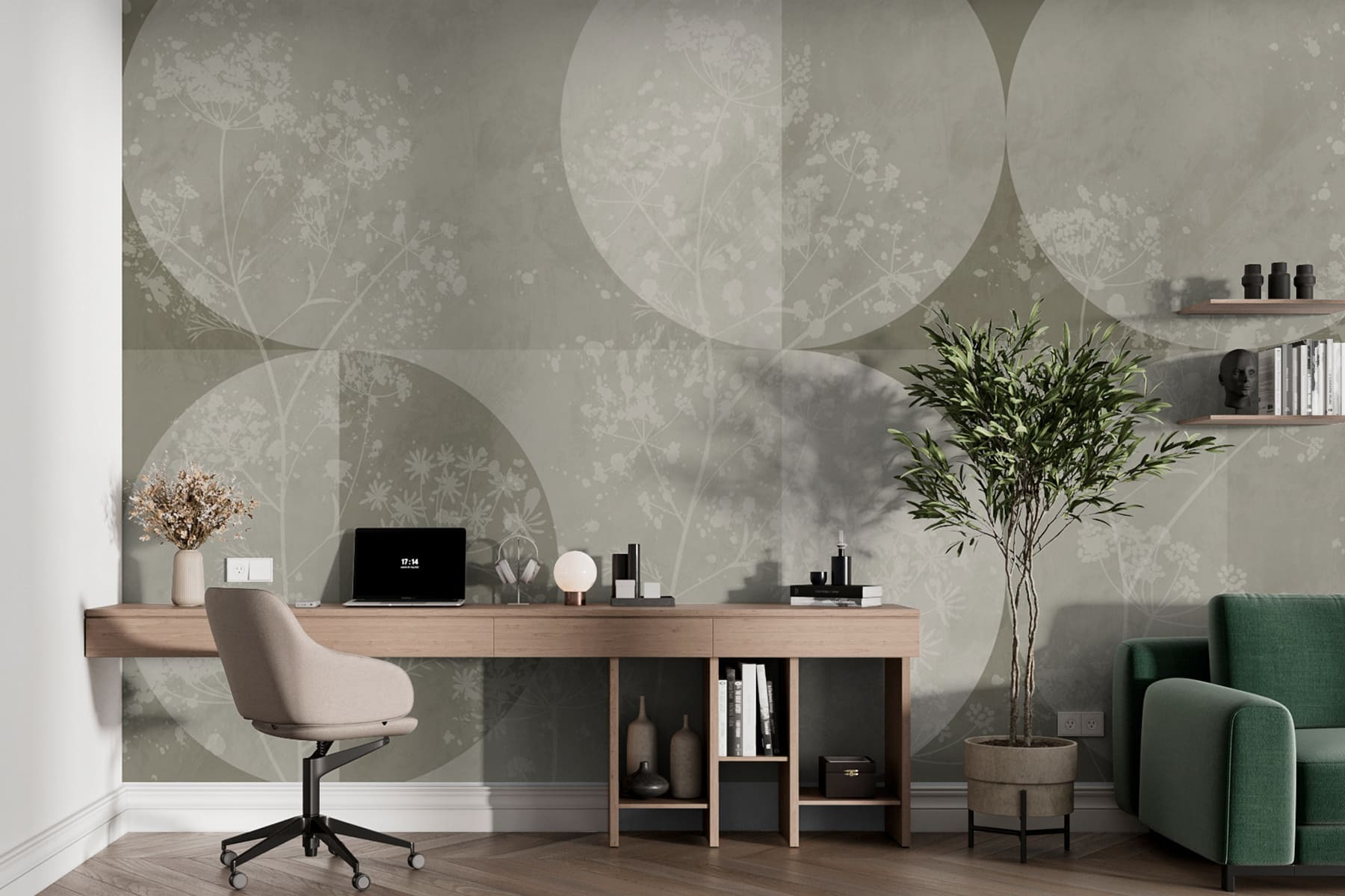 Transformeer je ruimte met deze fascinerende muurschildering die moeiteloos een grijs en wit palet combineert, met delicate cirkels en speelse bloemen. Stel je voor dat je wakker wordt met deze zachte, dromerige achtergrond die op de een of andere manier elk kopje koffie doet voelen als een chique gelegenheid. Het is alsof je een serene buitentuin in je woonkamer hebt. Het aquareleffect voegt een vleugje eigenzinnigheid toe, alsof elke bloem zachtjes wiegt in een zacht briesje. Perfect voor dat knusse hoekje of een creatieve werkplek, het brengt een serene sfeer die gewoon zegt, “Relax, je hebt dit.” Of je nu vrienden ontvangt of geniet van solomomenten, deze muurschildering voegt een opbeurende sfeer toe als een warme knuffel voor je muren.