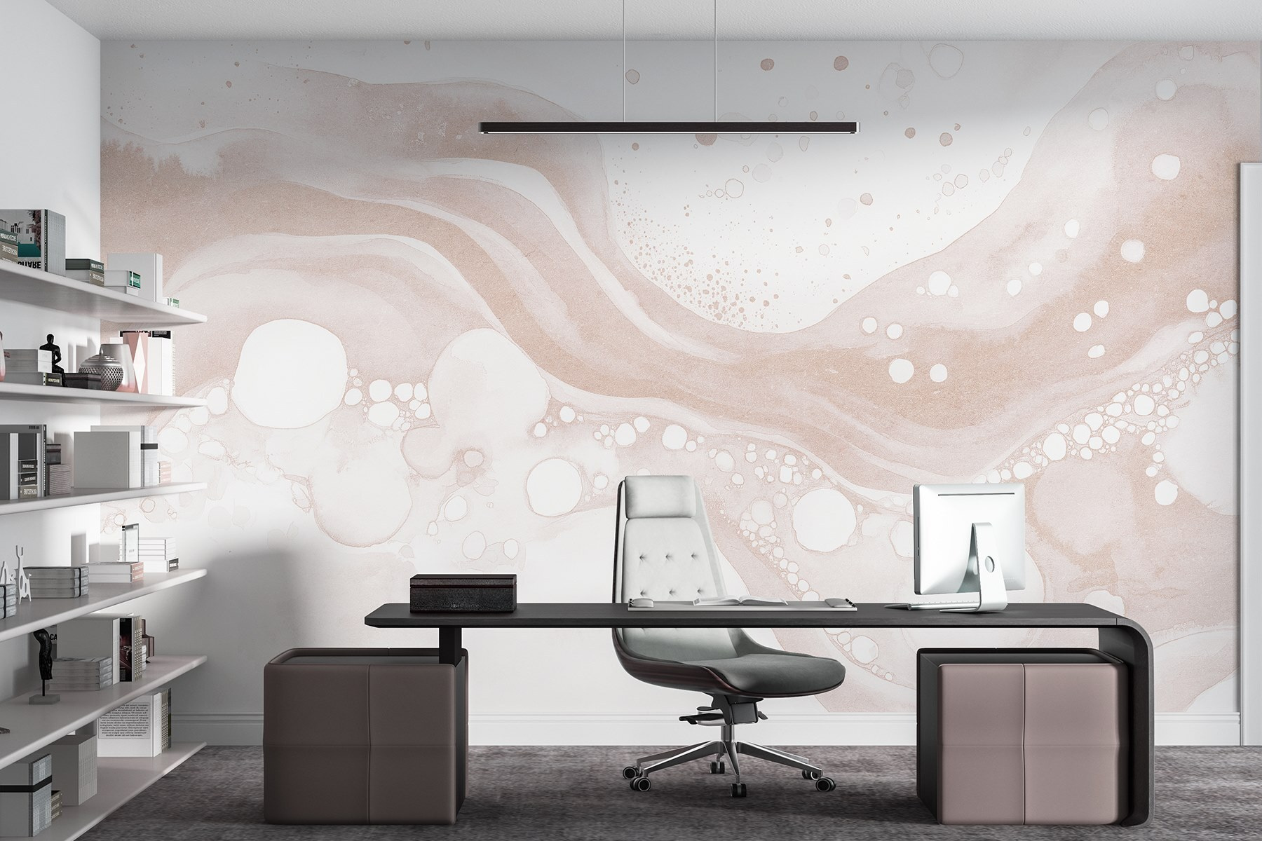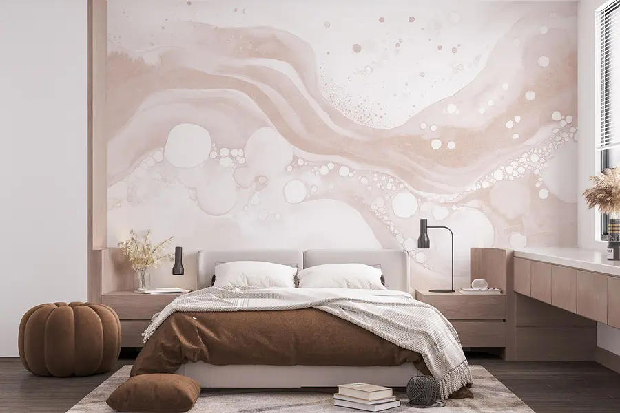 Verander een saaie ruimte in een serene ontsnapping met deze prachtige muurschildering, “Wit en Bruin Vloeibaar met Witte Cirkels en Stippen”. Stel je voor dat je wakker wordt met zachte, wervelende kleuren die over je muur dansen en een zachte sfeer creëren die uitnodigt tot ontspanning. De unieke stippen en vloeiende vormen bootsen een vleugje creativiteit na – perfect voor een gezellige woonkamer of een dromerige slaapkamer.