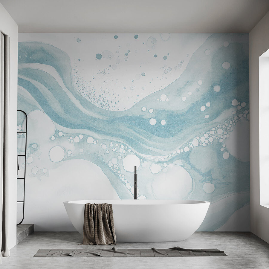 Transformeer je ruimte met deze muurschildering, een dromerige mix van witte en blauwe aquarelverf die doet denken aan een zachte zeebries gevangen op canvas. Stel je voor dat het een gezellige leeshoek opfleurt of een drukke woonkamer een vleugje rust geeft. De zachte rondingen en speelse bubbels nodigen uit tot dagdromen over luie stranddagen en kalmeren de zintuigen. Het is bijna alsof de muurschildering fluistert, “Haal diep adem, ontspan je”. Perfect voor natuurliefhebbers of iedereen die hunkert naar een vleugje sereniteit in huis. Stel je voor dat je thee drinkt terwijl deze muurschildering je muren opfleurt – wie zou die sfeer niet willen?