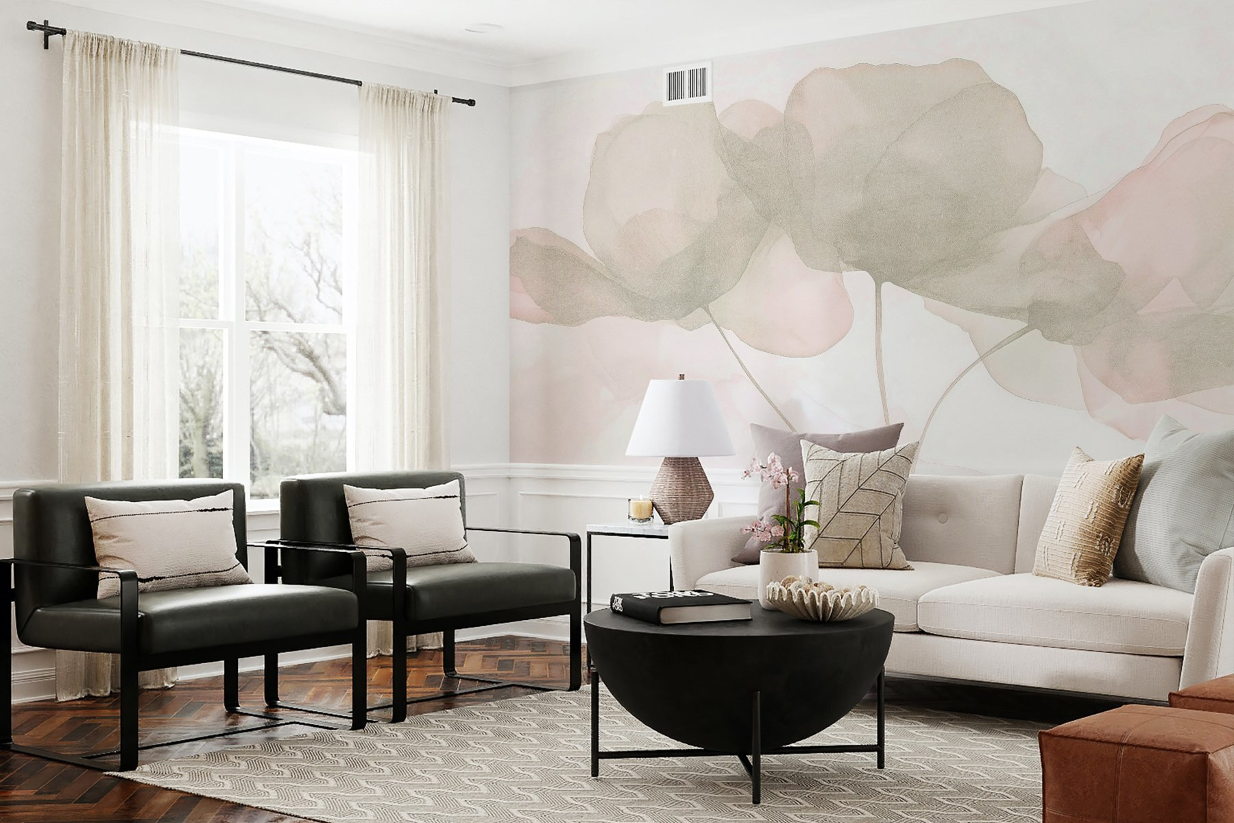 Stap in een oase van rust met de muurschildering “Delicate Blooms in Soft Hues”. Dit dromerige ontwerp hult je muren in zachte kleuren, waardoor elke kamer aanvoelt als een sereen toevluchtsoord in de tuin. Stel je voor dat je ‘s ochtends aan je koffie nipt terwijl het zonlicht danst op deze aquarel bloemblaadjes-ah, gelukzaligheid! Het is alsof je een vleugje lente in je woonkamer hebt, zonder dat je water hoeft te geven. Perfect om een gezellig hoekje op te fleuren of een elegant tintje aan een hal te geven. Met zijn zachte uitstraling zorgt het zeker voor complimentjes en misschien zelfs voor een beetje dagdromen. Het leven is te kort voor kale muren, toch?
