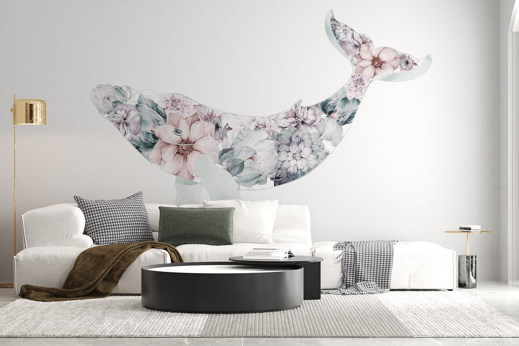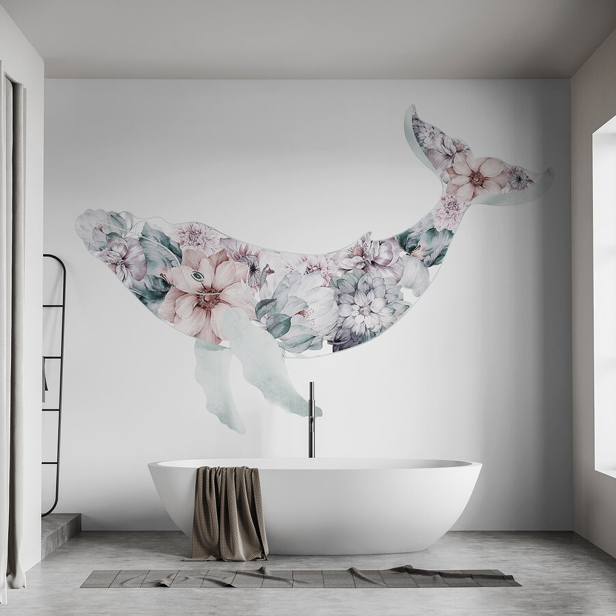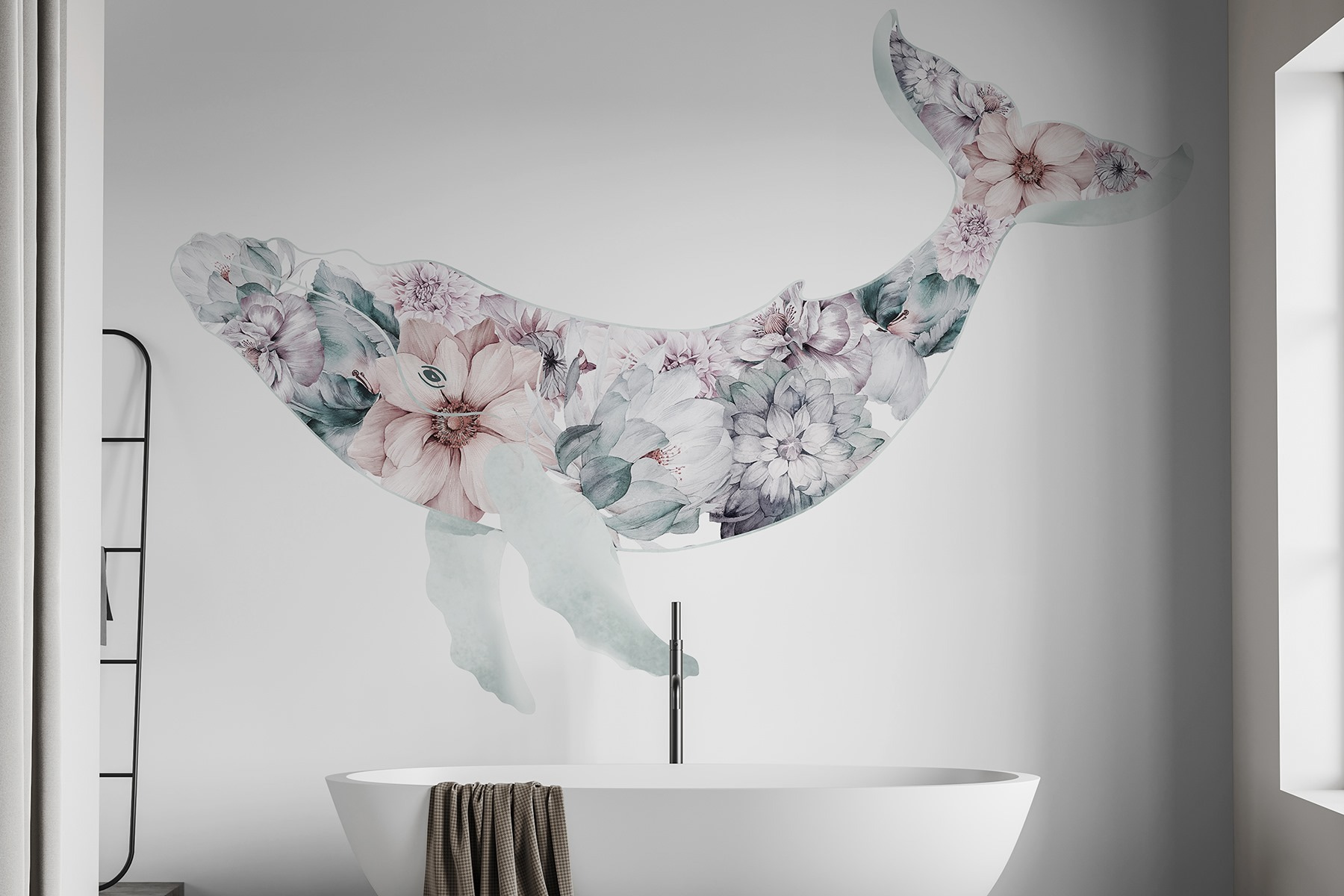 Transformeer je ruimte met deze betoverende muurschildering van walvissen, een heerlijke mix van oceaanfeeling en bloemencharme. Stel je voor: een enorme, serene walvis die sierlijk door een tuin van zachte bloemblaadjes en weelderige bladeren glijdt. Het is alsof je een vleugje van de zee naar je woonkamer brengt, waar elke blik aanvoelt als een teug frisse zeelucht. Deze muurschildering decoreert niet alleen, maar vertelt een verhaal van vredige avonturen en dromerige ontsnappingen. Ideaal voor elke kamer die wel wat magie kan gebruiken. Je krijgt het gevoel dat je zwemt in een tijdloze oceaan van rust. Perfect voor het creëren van een knusse leeshoek of een serene slaapkamer, dit stuk zou wel eens kunnen aanzetten tot dagdromen over oceaanreizen elke keer als je er langs loopt. Voel de zachte golven over je muren spoelen!