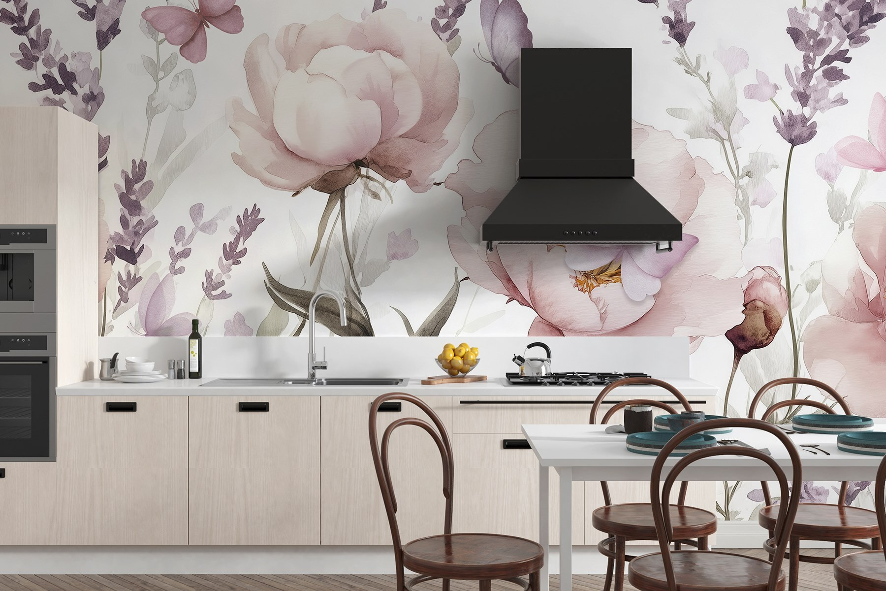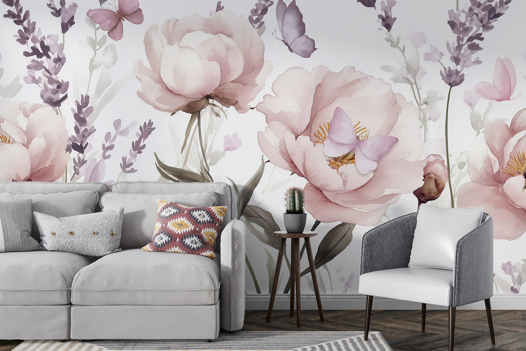 Tover elke ruimte om in een levendige tuin met deze betoverende muurschildering met delicate bloemen en speelse vlinders. Stel je voor dat je wakker wordt met zachte pioenrozen vol kleur en rondfladderende vlinders, die een grillige sfeer creëren die zowel verfrissend als vrolijk is. Het is alsof je een serene lentedag binnenstapt, ongeacht het seizoen. Perfect voor een gezellige leeshoek of een vrolijke keukenmuur, deze muurschildering nodigt uit tot dagdromen en warme gesprekken. En wie wil er nou niet wonen te midden van zoveel schoonheid? Het zijn de kleine dingen die onze dagen opvrolijken.