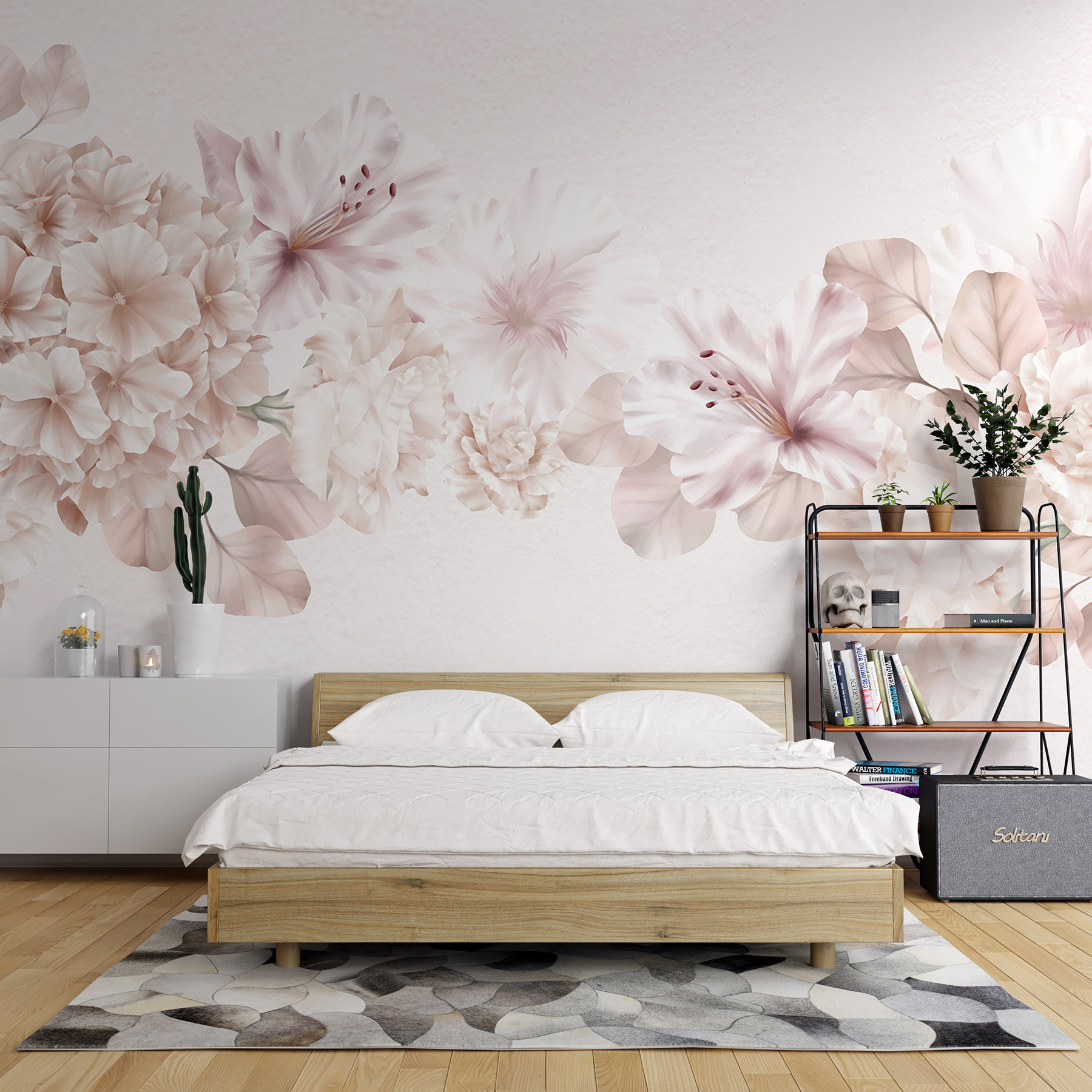 Stel je voor dat je na een lange dag thuiskomt en deze muurschildering je begroet met haar vredige charme. Perfect voor wie een vleugje natuur in huis wil halen zonder de groene vingers uit de mouwen te steken. Iedereen die houdt van bloemen, natuur of zelfs een beetje Zen-decor zal het helemaal waarderen.