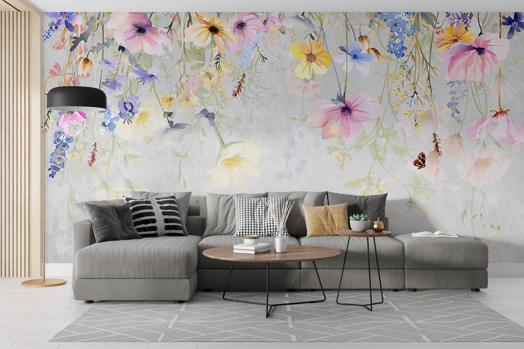 Stel je voor dat je een kamer binnenloopt en je in een dromerige tuin bevindt waar bloemen geheimen fluisteren en vlinders speels flirten met het briesje. Deze muurschildering transformeert niet alleen een muur, maar voert je mee naar een weide vol pastelkleurige bloemen en delicate vleugels. Voel de rust over je heen spoelen terwijl je ruimte tot leven komt – perfect om je creativiteit te stimuleren of gewoon om tot rust te komen na een hectische dag. Het is alsof je een lenteochtend in huis haalt, zonder dat je water hoeft te geven. Je persoonlijke oase, zonder de insecten!