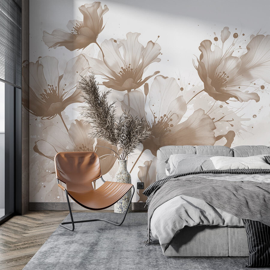 Stel je voor dat je een kamer binnenstapt die meteen lichter aanvoelt – een warme omhelzing van de natuur zonder de allergie. Deze muurschildering “Groep bloemen met witte bloemblaadjes” brengt een luchtige elegantie die delicaat danst op de muren. Het is net alsof er een serene tuin in je kamer bloeit, die fluistert dat het mooi is. De zachte tinten en het aquareleffect creëren een gezellige sfeer, perfect om in te loungen of om diep over na te denken. Stel je voor dat je aan de thee zit, omringd door deze bloemenwonderen, met een glimlach op je gezicht. Het is niet alleen decor; het is een ervaring om elke dag van te genieten!