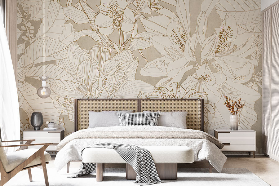 Tover elke kamer om in een rustgevende oase met deze prachtige muurschildering met delicate bloemen en bladeren. Stel je voor dat je de ruimte binnenstapt en het gevoel hebt dat je in een serene tuin bent beland. Het zachte aquarelontwerp brengt een lichte, luchtige sfeer, perfect om een rustige sfeer te creëren – ideaal voor gezellige avonden met een boek of levendige brunchgesprekken met vrienden. Bovendien is het een gemakkelijke manier om je inrichting te verbeteren zonder dat het je geld kost of moeite kost! Zeg maar dag tegen saaie muren en hallo tegen een frisse, speelse twist die elke blik een lentegevoel geeft.