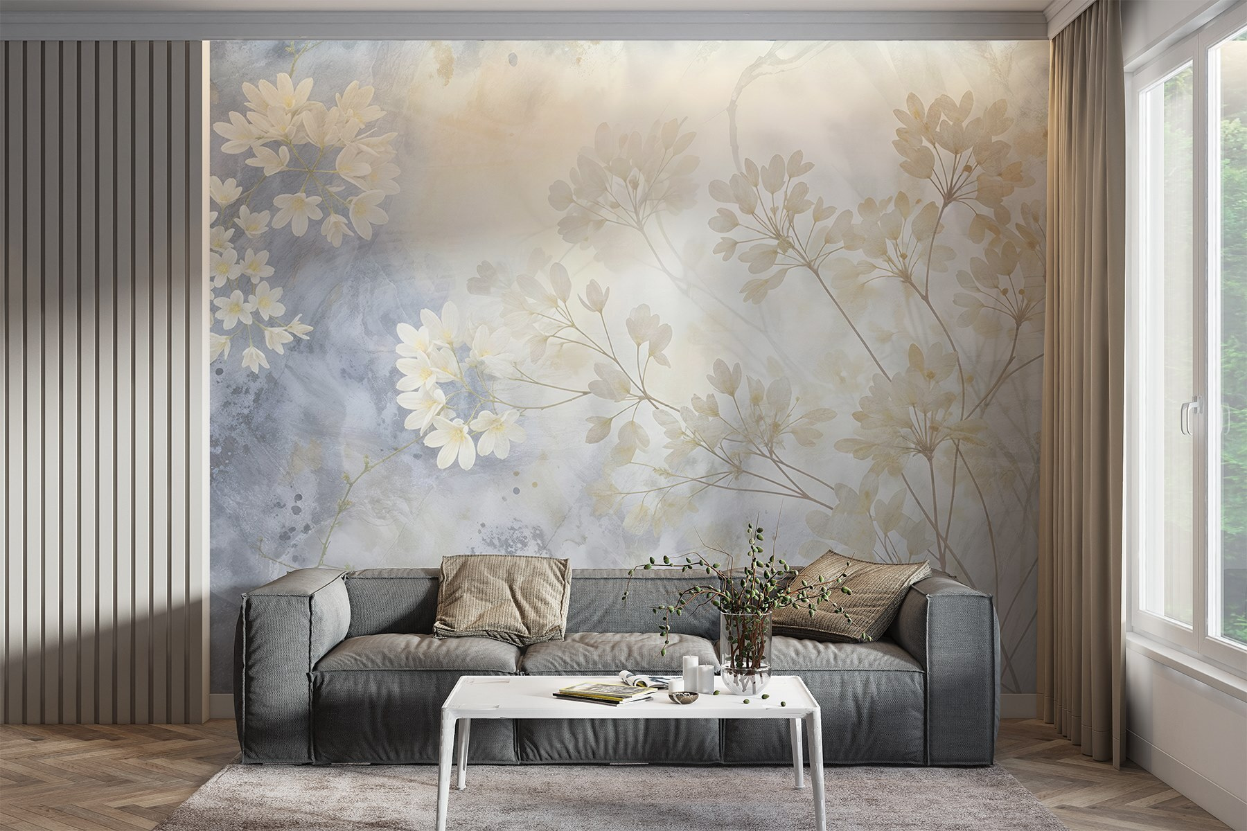 Een kamer transformeren? Kijk dan eens naar deze prachtige muurschildering “Zachte bloemblaadjes op een zachte achtergrond”. Het is alsof je een zachte lentebries je kamer binnen laat stromen. De delicate bloemen dansen op een rustgevende achtergrond en creëren een ontspannen sfeer die fluistert: “Chill out for a sec. Stel je voor dat je wakker wordt en begroet wordt door deze serene schoonheid – geen slechte manier om de dag te beginnen, toch?