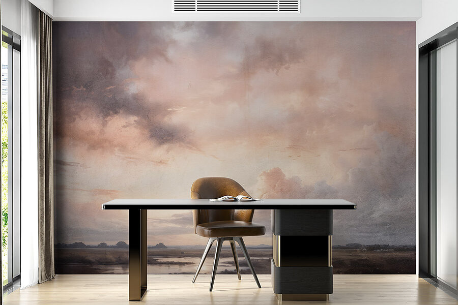 Transformeer je ruimte met deze dromerige muurschildering, “Landschap met water en wolken”. Het is alsof je een stukje natuur op je muren hebt! Stel je voor dat je wakker wordt met zachte pasteltinten en zachte wolken die een kalme sfeer lijken uit te stralen. Het serene water weerspiegelt deze prachtige tinten en nodigt uit tot een gevoel van rust dat je gewoon naar binnen trekt. Perfect voor een knus leeshoekje of een serene slaapkamerhoek, deze muurschildering hult de kamer in een knusse knuffel. Het is net een mini-uitstapje telkens als je binnenkomt, zonder koffer! Perfect voor wie houdt van een vleugje kunst in zijn leven zonder de rommel van verf.