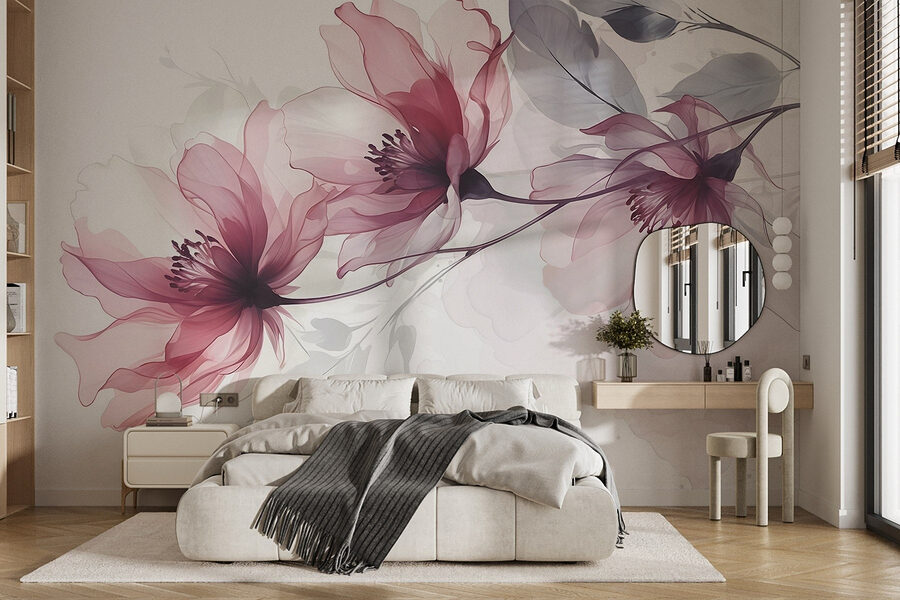 Transformeer je ruimte met “Delicate Blooms in Soft Hues”. Stel je voor dat je een serene Japanse tuin binnenstapt, waar pioenrozen zachtjes dansen in de bries – deze muurschildering brengt die rust rechtstreeks naar je muur. De zachte roze en subtiele groene tinten creëren een sfeer die zowel fris als rustig aanvoelt.