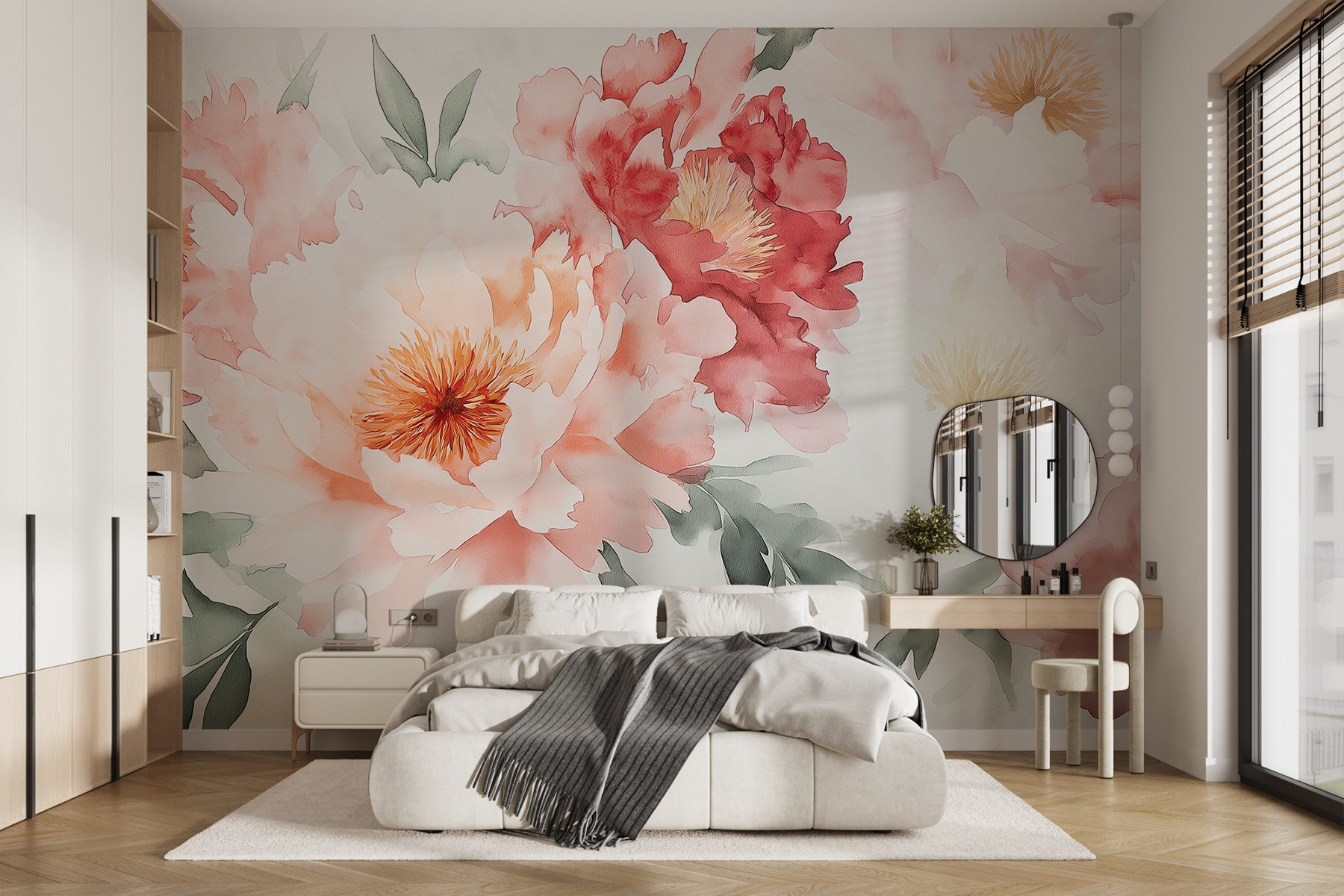 Transformeer je kamer met de charmante muurschildering “Delicate Blossoms in Soft Pastel Hues”. Stel je eens voor dat je een kamer binnenloopt waar waterverf pioenrozen op je muren bloeien en een gevoel van sereniteit oproepen. Deze zachte tinten dansen subtiel en creëren een zachte achtergrond die perfect combineert met gezellige meubels of die ene funky stoel waar je niet zonder kunt. Het is alsof je een tuin naar binnen haalt! Stel je die luie namiddagen voor, een kopje thee in de hand, terwijl je geniet van de schoonheid om je heen. Deze muurschildering decoreert niet alleen, ze fluistert warmte en elegantie in elke hoek, waardoor je je meteen thuis voelt. Perfect voor elke kamer die hunkert naar een vleugje bloemenplezier!