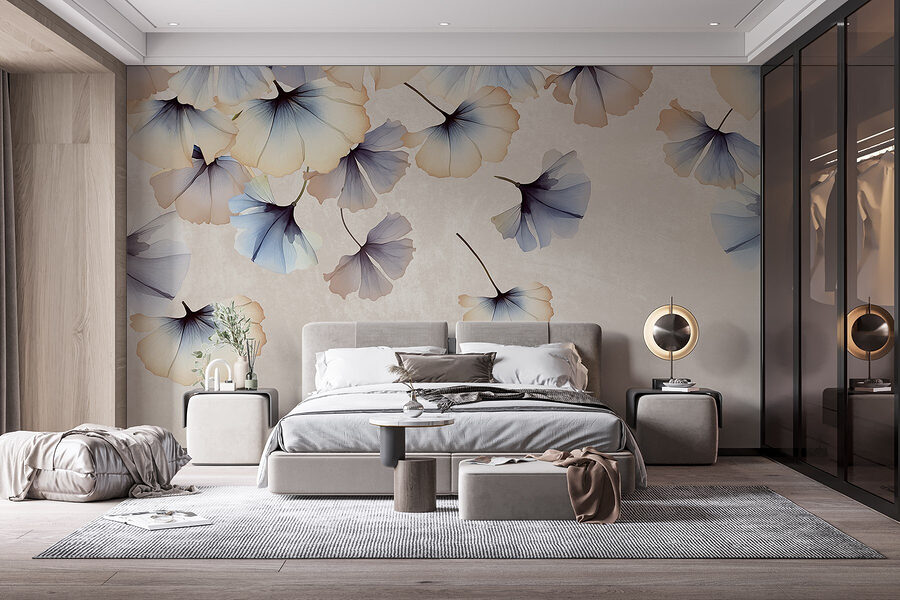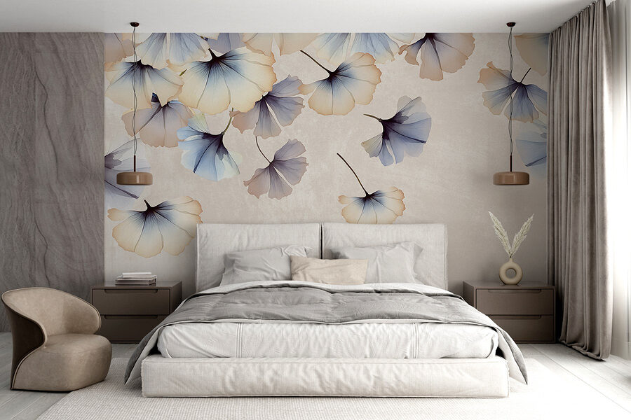 Stel je eens voor dat je een kamer binnenstapt waar tere bloemblaadjes lijken te dansen in de wind – deze muurschildering doet precies dat. De zachte aquareltinten van blauw en crème creëren een bijna droomachtige sfeer en brengen de schoonheid van de natuur naar binnen. Stel je voor dat je lekker op de bank ligt met een kopje koffie in je hand terwijl deze zachte bloemblaadjes in een rustig ballet om je heen dwarrelen, vreugde opwekken en de geest kalmeren. Het is net een minivakantie aan je muur!