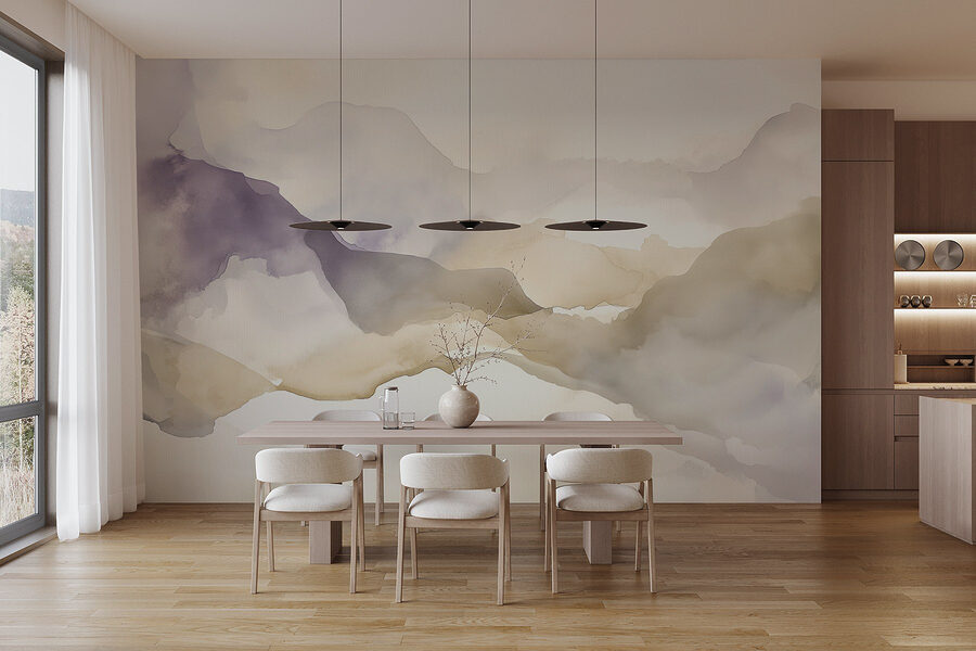 Verander je ruimte in een gezellig toevluchtsoord met deze prachtige aquarelmuurschildering van bergen. Stel je voor dat je wakker wordt met zachte, dromerige tinten lavendel en crème, zoals de hemel bij zonsopgang. Deze muurschildering versiert niet alleen een muur, maar brengt een frisse wind in elke kamer en verandert die in een oase van rust. Of het nu je woonkamer, slaapkamer of zelfs een rustig leeshoekje is, het is perfect om die serene sfeer te creëren. Bovendien kunnen de zachte kleurovergangen je creativiteit aanwakkeren of je inspireren tot dagdromen. Wie wil er nu niet elke dag het gevoel hebben dat hij in de bergen is? Perfect voor natuurliefhebbers of gewoon voor iedereen die op zoek is naar een stijlvol interieur met een vleugje kunstzinnigheid. Het is alsof de bergen je geheimen van vrede en rust toefluisteren.