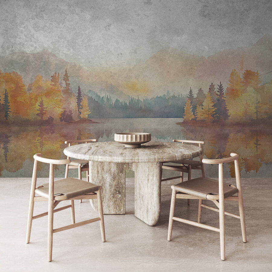 Verander je ruimte in een gezellige ontsnapping met deze prachtige aquarelmuurschildering van een sereen meer omringd door weelderige bomen en majestueuze bergen. Stel je voor dat je wegdrijft, koffie in de hand, terwijl de warme kleuren en zachte reflecties je meevoeren naar je favoriete buitenverblijf. Het is alsof je een stukje natuur binnen de muren uitnodigt. Deze muurschildering is perfect voor een woonkamer of een rustig kantoor en voegt diepte en charme toe met zijn subtiele tinten. Het is niet alleen decor; het is een dagelijkse herinnering om adem te halen, tot rust te komen en misschien zelfs een beetje te dagdromen. Wie wil er nu geen vleugje rust in zijn leven?
