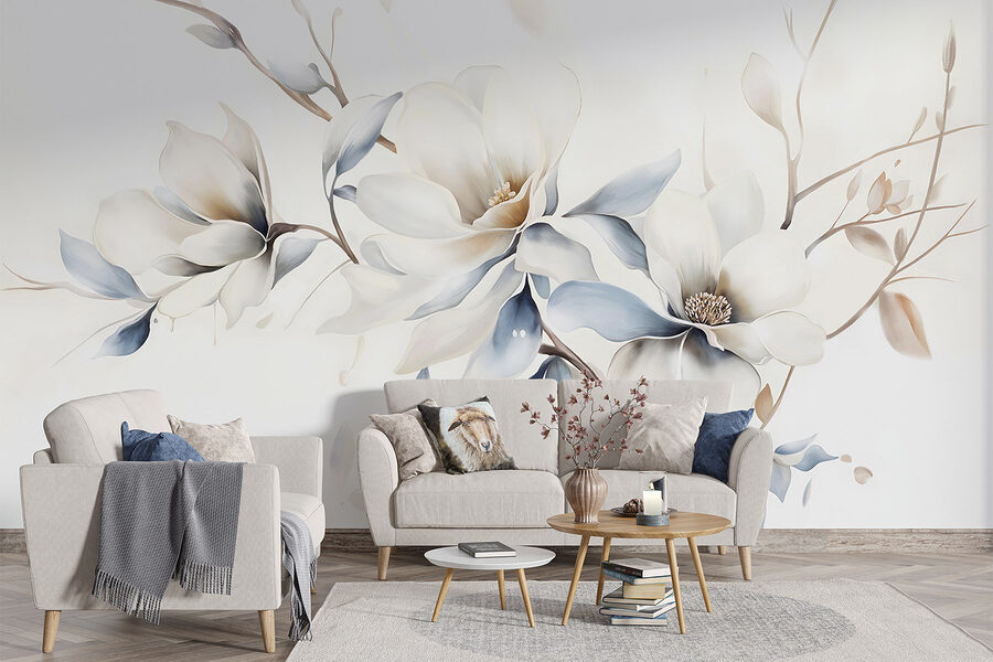 Tover je ruimte om in een rustig toevluchtsoord met deze opvallende muurschildering van delicate bloemen op een zacht witte achtergrond. Het is alsof je een zachte lentebries in je woonkamer hebt, klaar om de stemming op elke dag van de week op te vrolijken. Stel je voor dat je ‘s ochtends aan je koffie nipt, het zonlicht naar binnen schijnt en die prachtige bloemen alles een beetje levendiger maken. De aquarelstijl voegt een dromerig tintje toe, bijna alsof de bloemen op het punt staan uit de muur te bloeien. Deze muurschildering is perfect om een slaapkamer op te fleuren of een gezellig leeshoekje te accentueren en nodigt uit tot warmte, elegantie en een vleugje natuur in je huis. Wie wist dat muren zoveel vreugde konden brengen?
