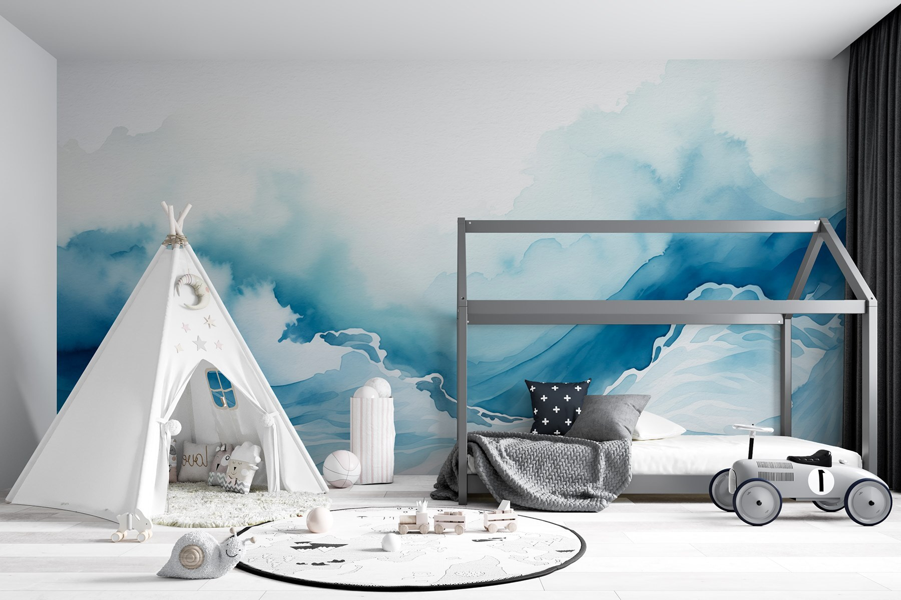 Stel je voor dat je een kamer binnenstapt en begroet wordt door de zachte omhelzing van een aquarel bergmuurschildering. Deze schoonheid, met zacht blauw en piekerige wolken, vangt dat serene gevoel van aan de rand van de wereld staan. Het is alsof de natuur je oproept om tot rust te komen. Denk aan gezellige avonden, nippend aan een kopje thee, terwijl je naar die dromerige bergtoppen staart. De manier waarop de kleuren in elkaar overvloeien? Pure magie. Perfect voor een vakantie aan zee of om gewoon van te dromen! Deze muurschildering doet meer dan decoreren; het fluistert verhalen van avontuur en rust, waardoor elke muur een canvas voor verbeelding wordt. Dus of je nu van de bergen houdt of gewoon een beetje artistieke flair wilt, dit stuk brengt rust in elke ruimte.