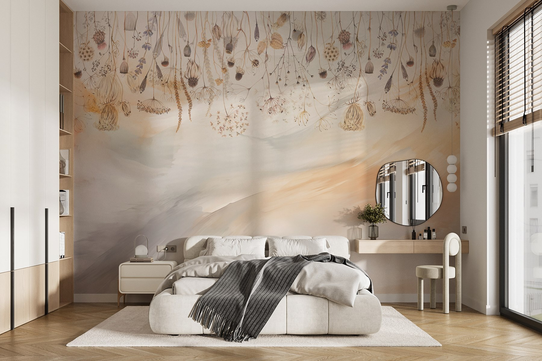Transformeer je ruimte met deze betoverende muurschildering van gedroogde bloemen en planten, waar kunst en rust elkaar ontmoeten. Stel je voor dat je elke dag in een sereen toevluchtsoord stapt; de zachte aquareltinten overspoelen je muren en creëren een vredige achtergrond die fluistert van de schoonheid van de natuur. Perfect voor een gezellig leeshoekje of een inspirerende werkplek, deze muurschildering nodigt uit tot dagdromen en rustige gesprekken. Het is alsof je een geheime tuin in huis hebt, met bloemen die nooit verwelken. Stel je voor dat je je oprolt met een kopje thee, genietend van de rustgevende sfeer – zalig, toch? Laat deze muurschildering je leven betoveren.