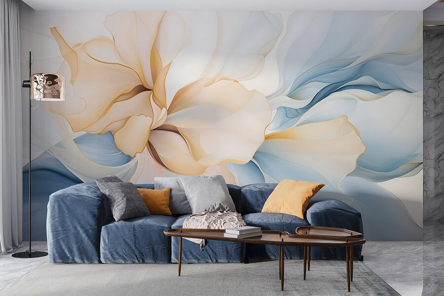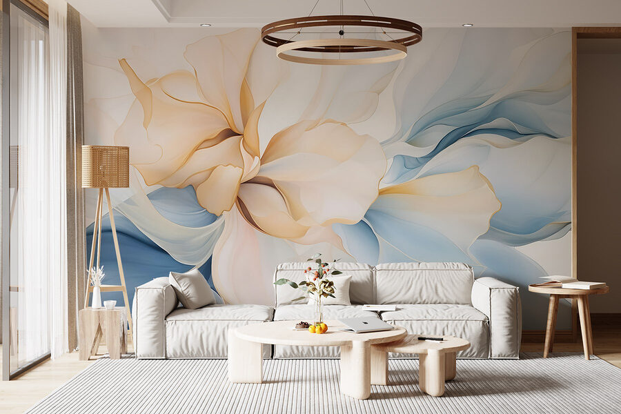 Transformeer uw ruimte met ‘Soft Hues in Delicate Floral Dance’, een muurschildering die elegantie uitstraalt. Stel u voor dat u een kamer binnenloopt en u zich meteen beter voelt, alsof u wordt omringd door een zacht briesje van pastelkleurige bloemblaadjes die om u heen dwarrelen. Deze muurschildering combineert zachte blauwtinten en warme crèmekleuren, alsof een frisse lentedag op uw muur is vastgelegd. Perfect voor dat gezellige leeshoekje, of zelfs de woonkamer, waar vrienden samenkomen en lachen onder het genot van een kopje koffie. Het is alsof u een tuin in huis haalt, maar dan zonder de allergieën. Laat die bloemige vibes een serene sfeer creëren en rust en creativiteit in elke hoek brengen. Ziet u het al voor u?