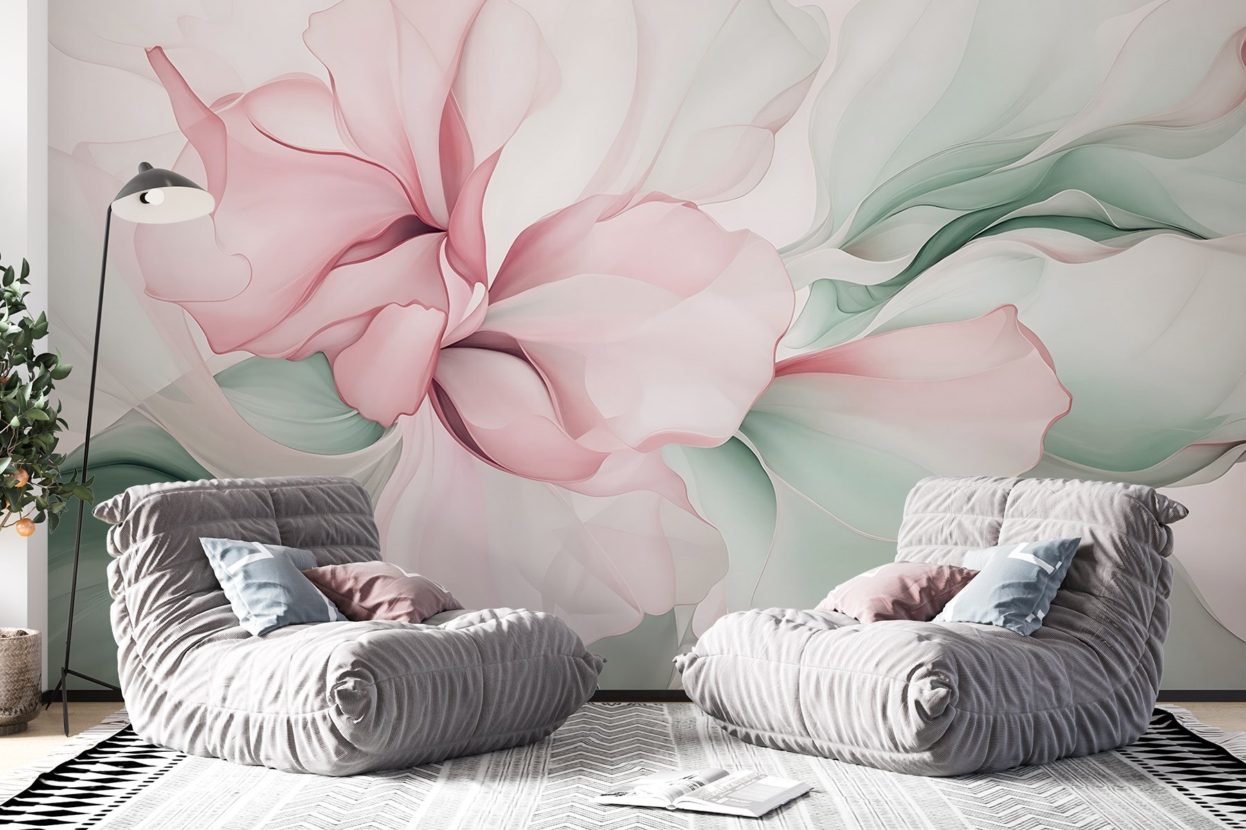 Transformeer uw ruimte met de betoverende “Delicate Petals in Soft Hues”. Deze muurschildering is niet alleen een decoratie, het is alsof u een zacht briesje vol bloeiende bloemen in uw huis uitnodigt. Stelt u zich eens voor: u stapt de kamer binnen en die zachte bloemblaadjes in roze tinten omhullen u met een gezellige knuffel van rust.