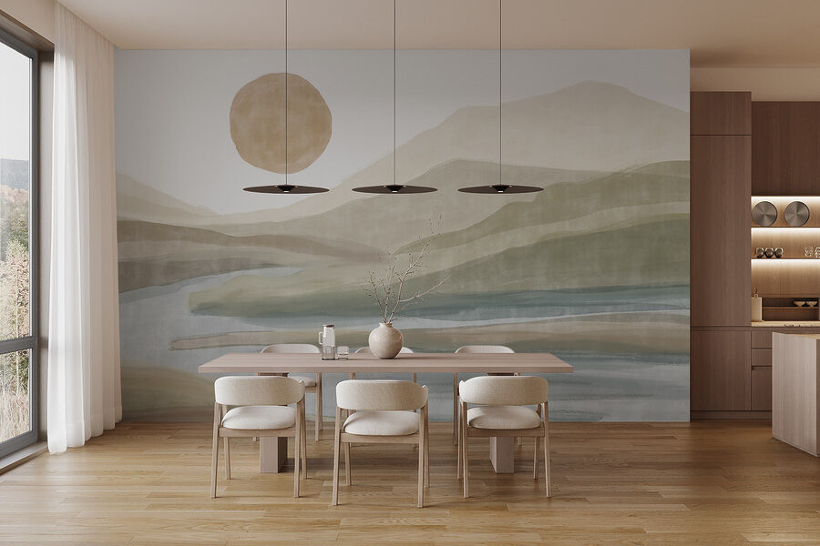 Transformeer elke kamer met deze prachtige aquarelmuurschildering van een rivier en bergen. Het is alsof je een rustige dag buiten naar binnen haalt – wie heeft er dan nog vakantie nodig? De zachte tinten en vloeiende lijnen creëren een rustgevende sfeer die perfect is om te ontspannen of inspiratie op te doen. Stel je voor dat je op zondagochtend koffie drinkt, terwijl het zonlicht naar binnen stroomt en deze muurschildering de perfecte achtergrond vormt. Het is bijna alsof de natuur zelf fluistert: “Neem even pauze.” Ideaal voor natuurliefhebbers of iedereen die een vleugje rust in zijn ruimte wil. Voeg een gezellig kleed toe en je bent helemaal klaar voor de ultieme chillzone!