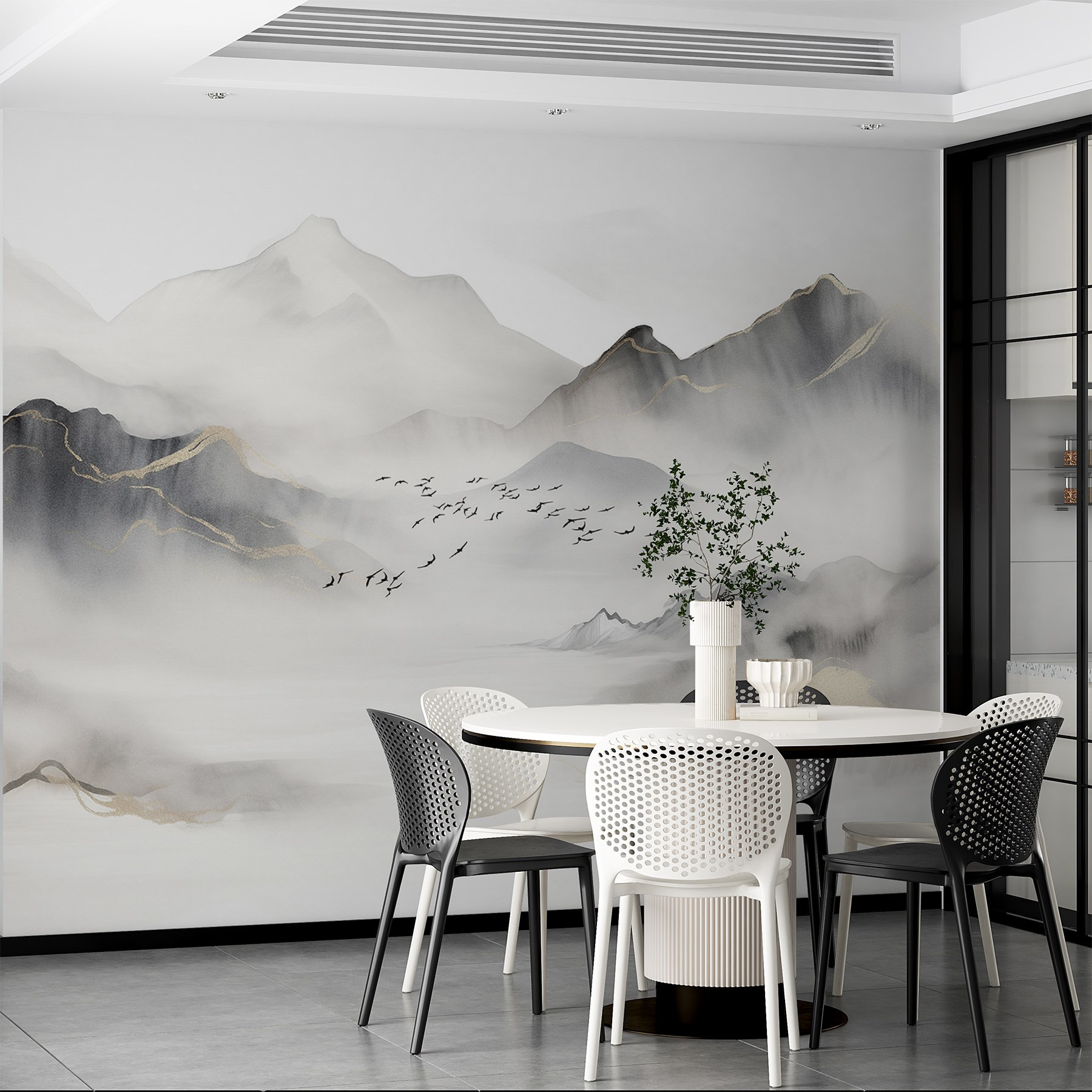 De installatiemethode hangt af van de hoogte van het behang. Voor behang tot 3,60 meter hoogte moet het behang eind aan eind worden geïnstalleerd. Behang dat hoger is dan 3,60 meter moet overlappend worden geïnstalleerd, gevolgd door het snijden van de voeg op de muur.